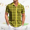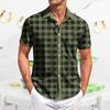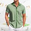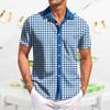 Мужская повседневная рубашка с короткими рукавами, приталенная, модная, с принтом в клетку