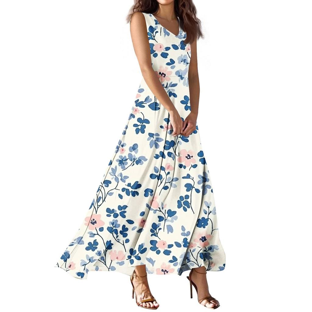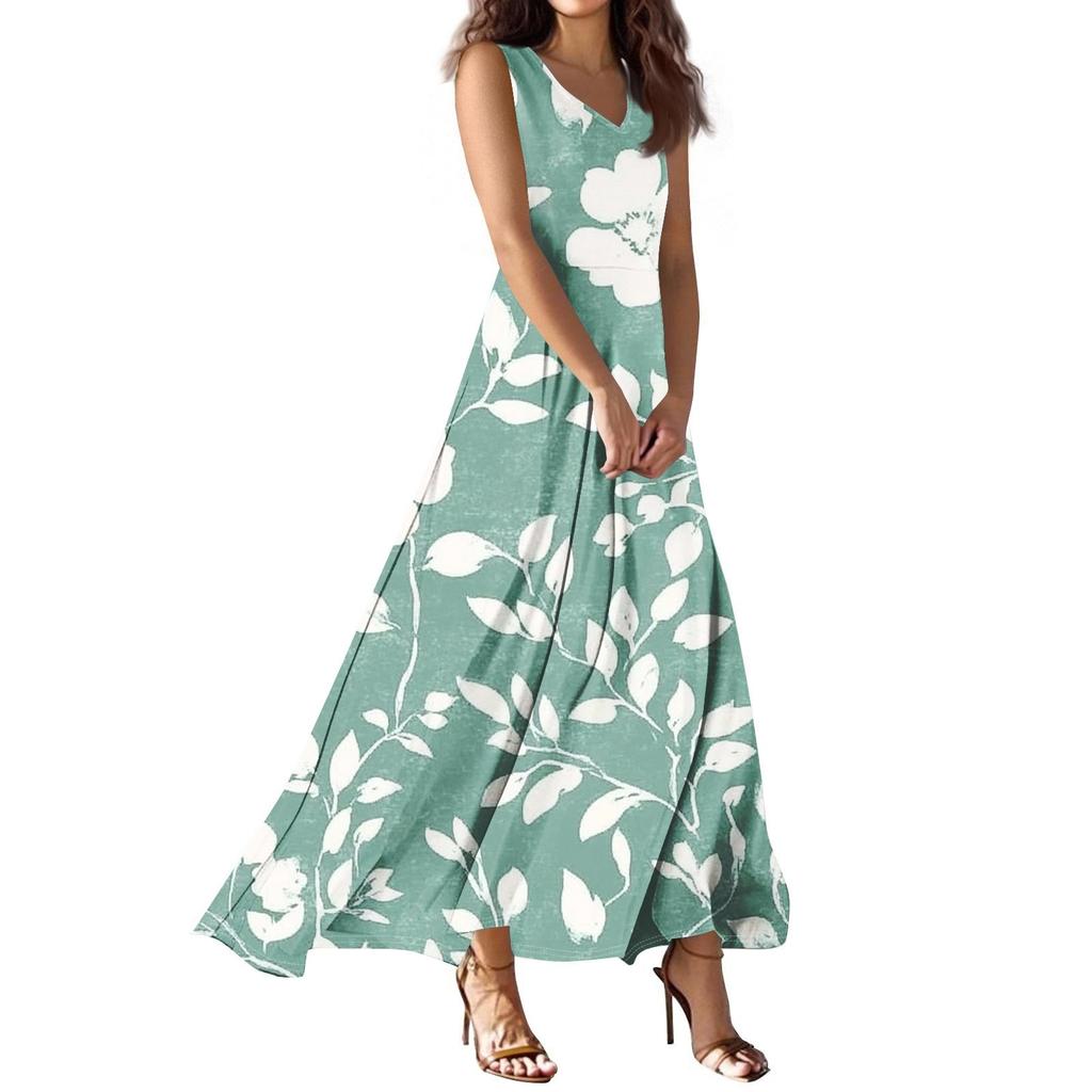 Женское летнее повседневное модное платье с принтом, платье без рукавов с V-образным вырезом