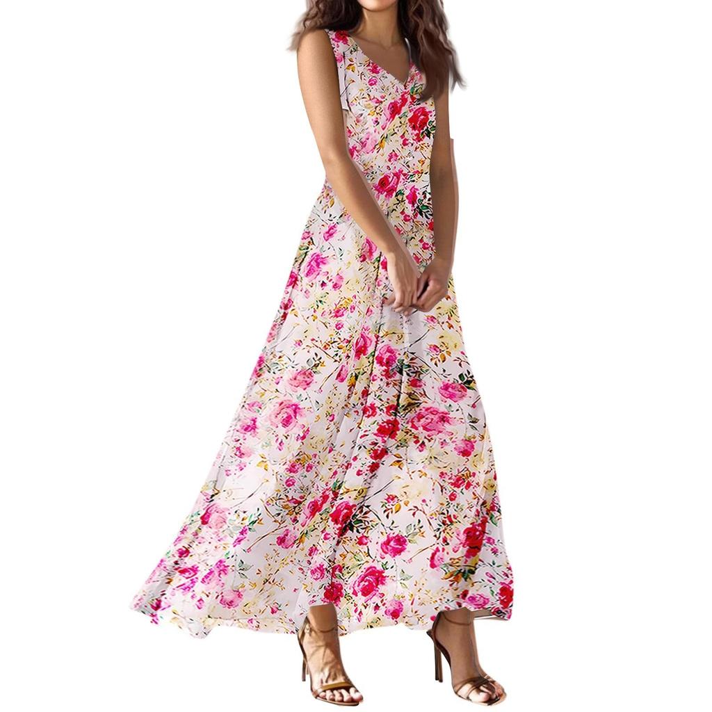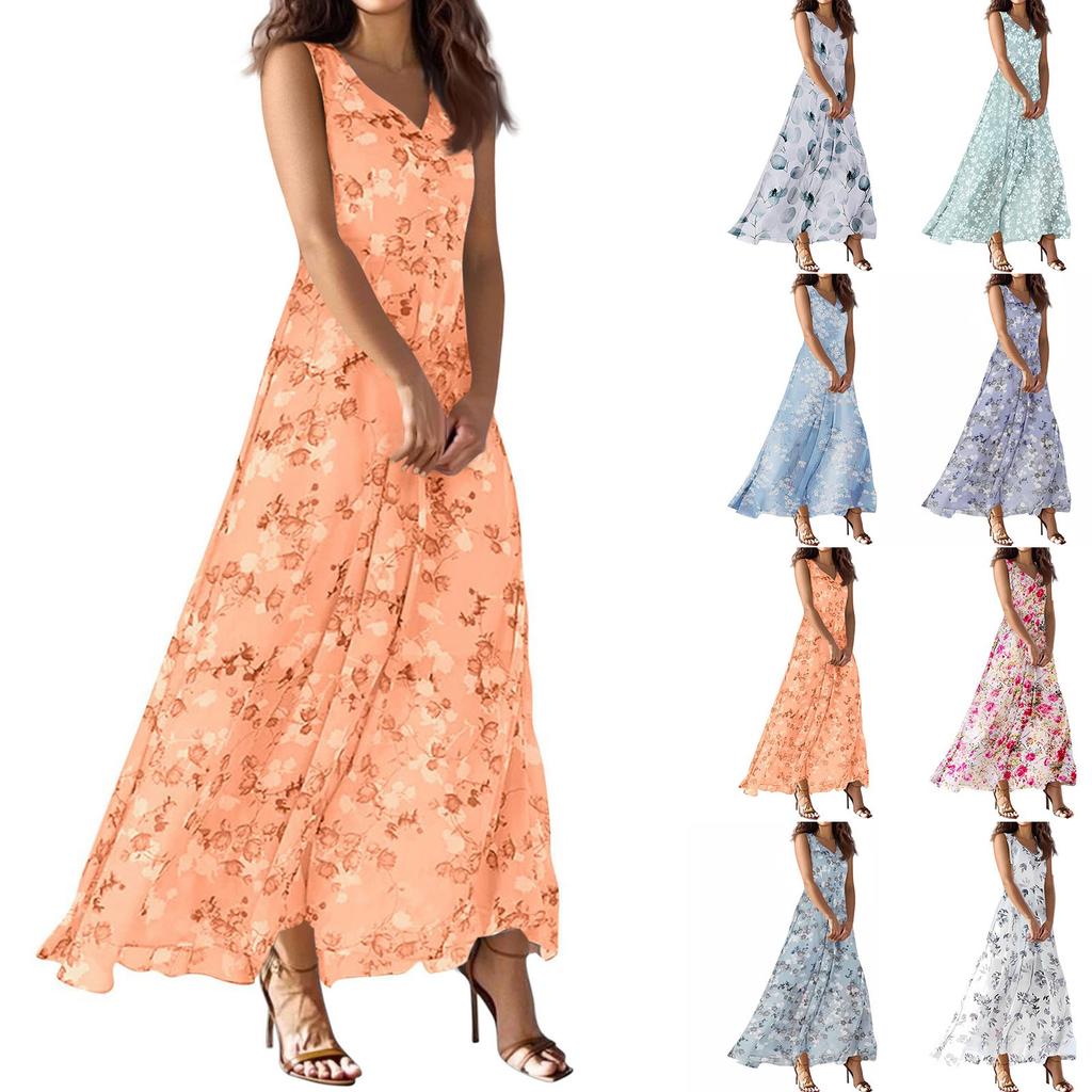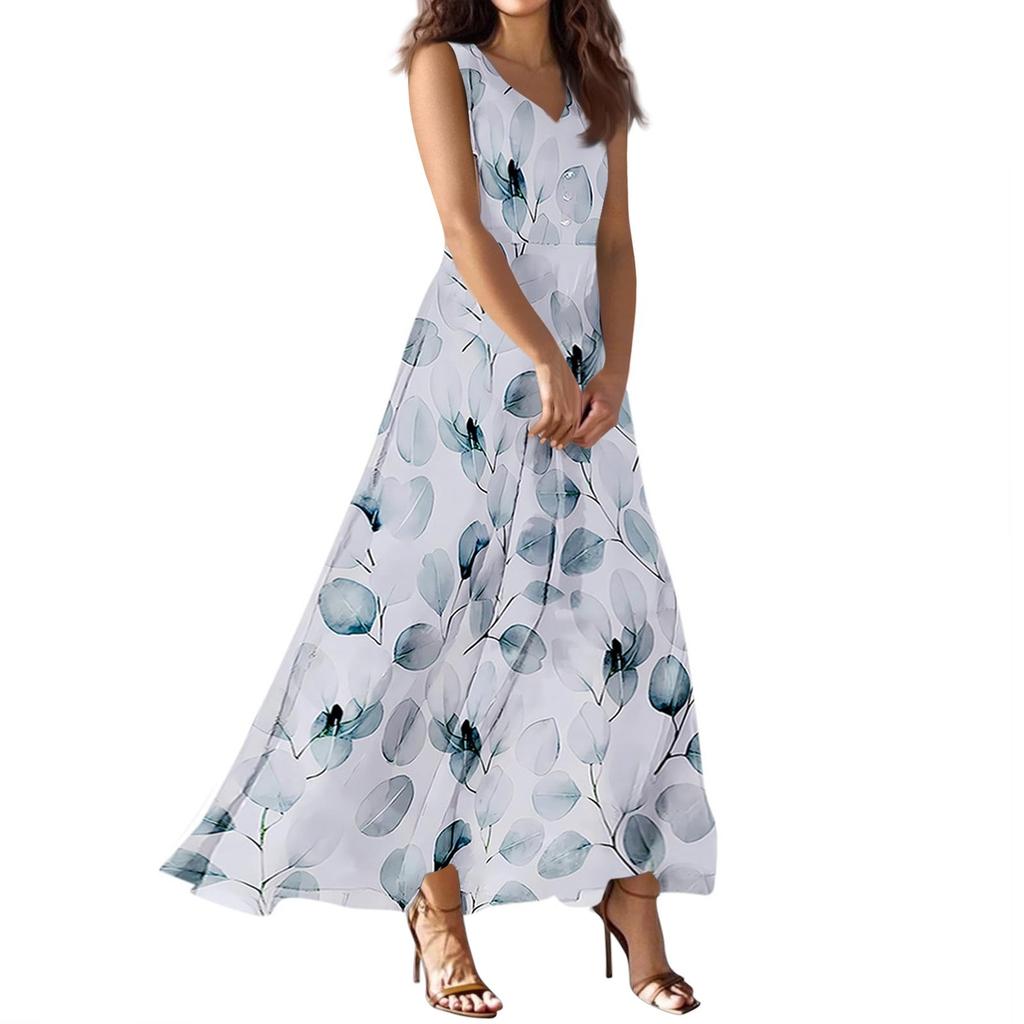 Женское летнее повседневное модное платье с V-образным вырезом без рукавов