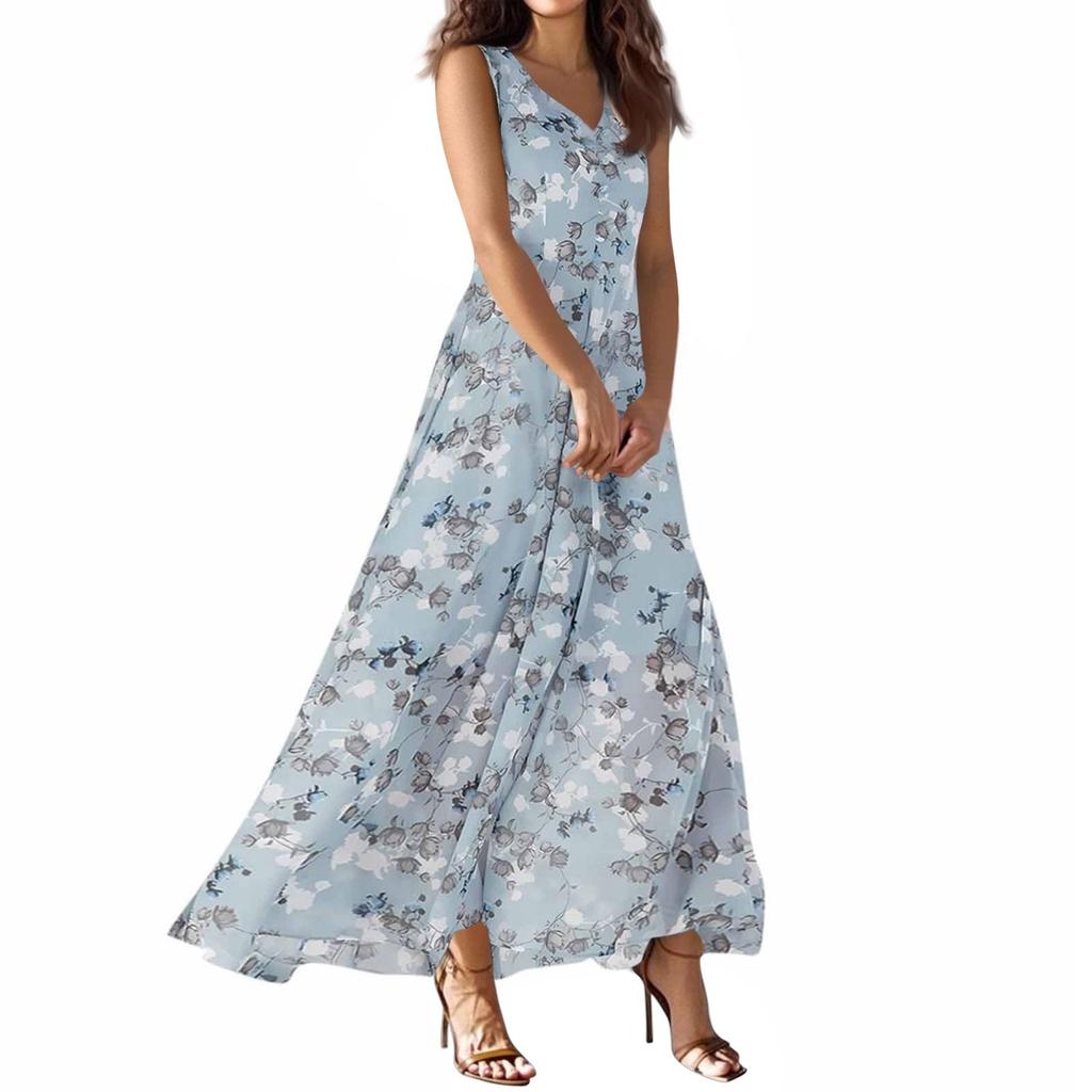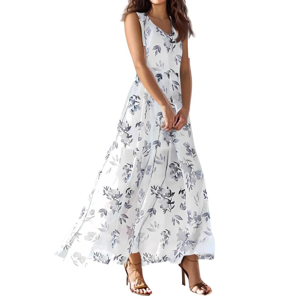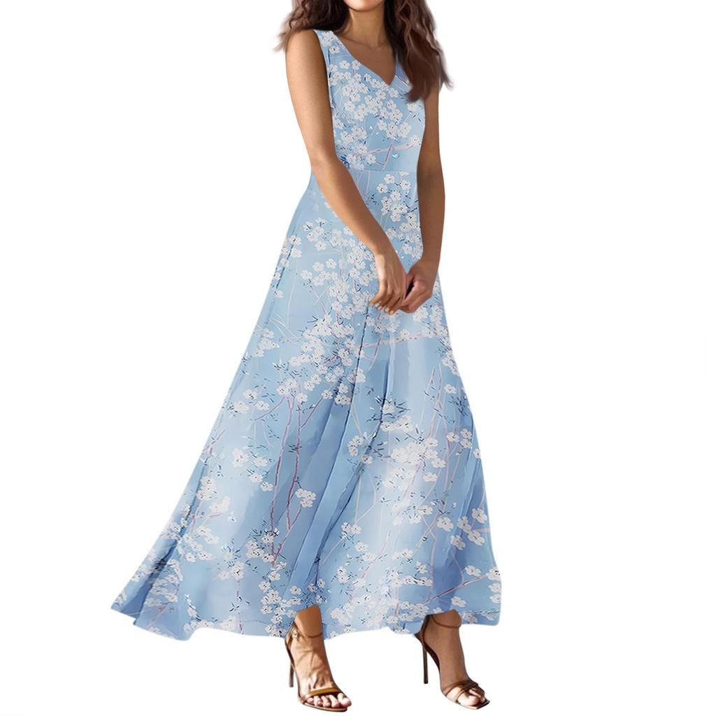 Женское летнее повседневное модное платье с V-образным вырезом без рукавов