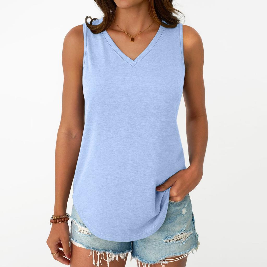 Женская мода повседневная облегающая безрукавка с V-образным вырезом футболка топ