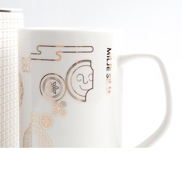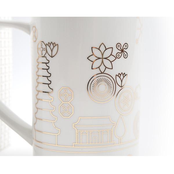 Эта кружка переосмысливает культовые артефакты династии Силла с помощью элегантных современных иллюстраций, напечатанных золотом на высококачественной керамике..