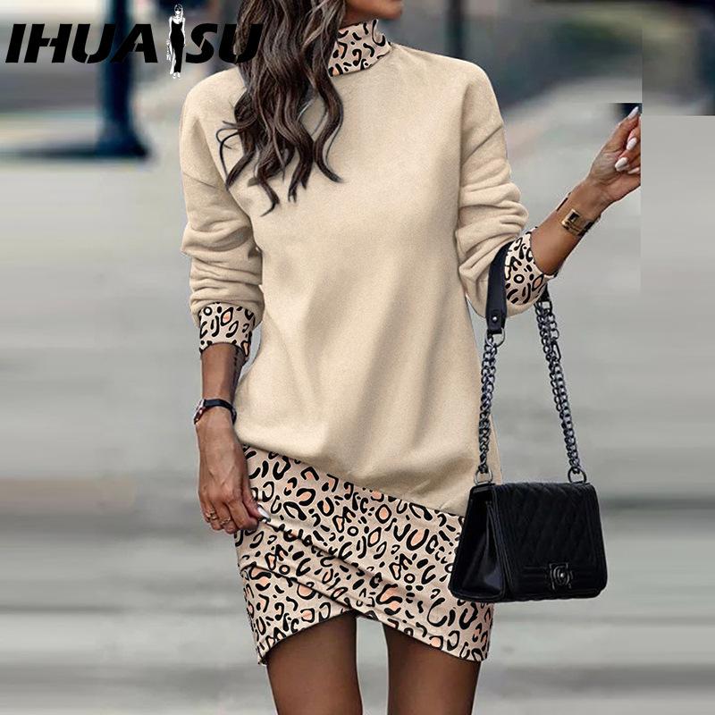 IHUASU Осеннее платье с длинным рукавом и высоким воротом с принтом для женщин