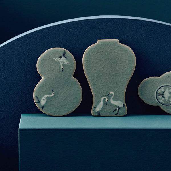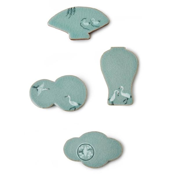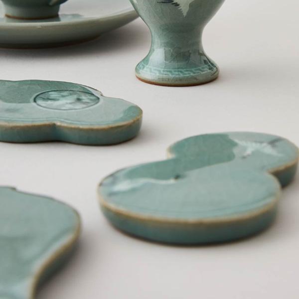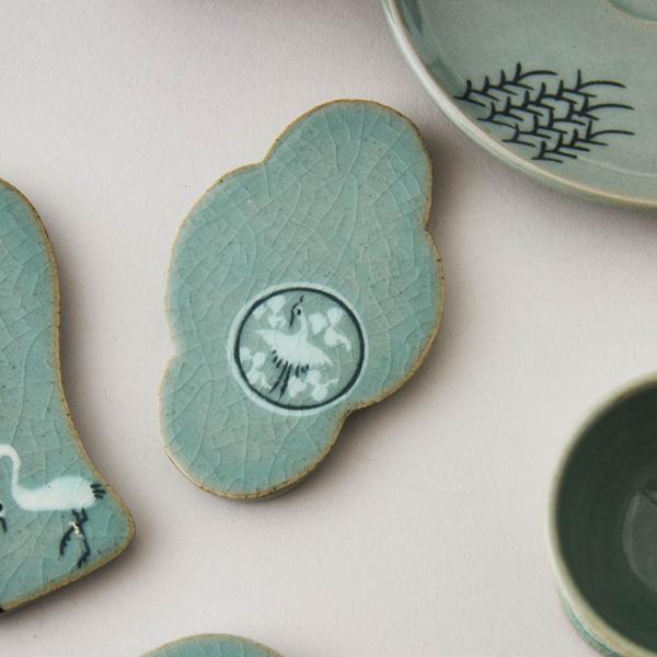 Эта коллекция подставок для палочек для еды демонстрирует летящих журавлей в классической глазури цвета морской волны, сочетая корейские традиции с повседневной практичностью..