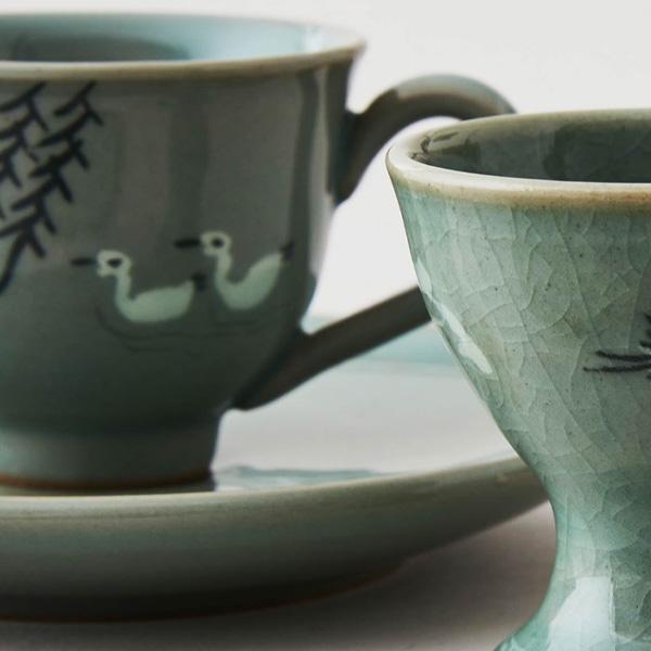 ✔️ Дизайн: Традиционный корейский селадон с мотивом журавля, переосмысленный для современной столовой посуды