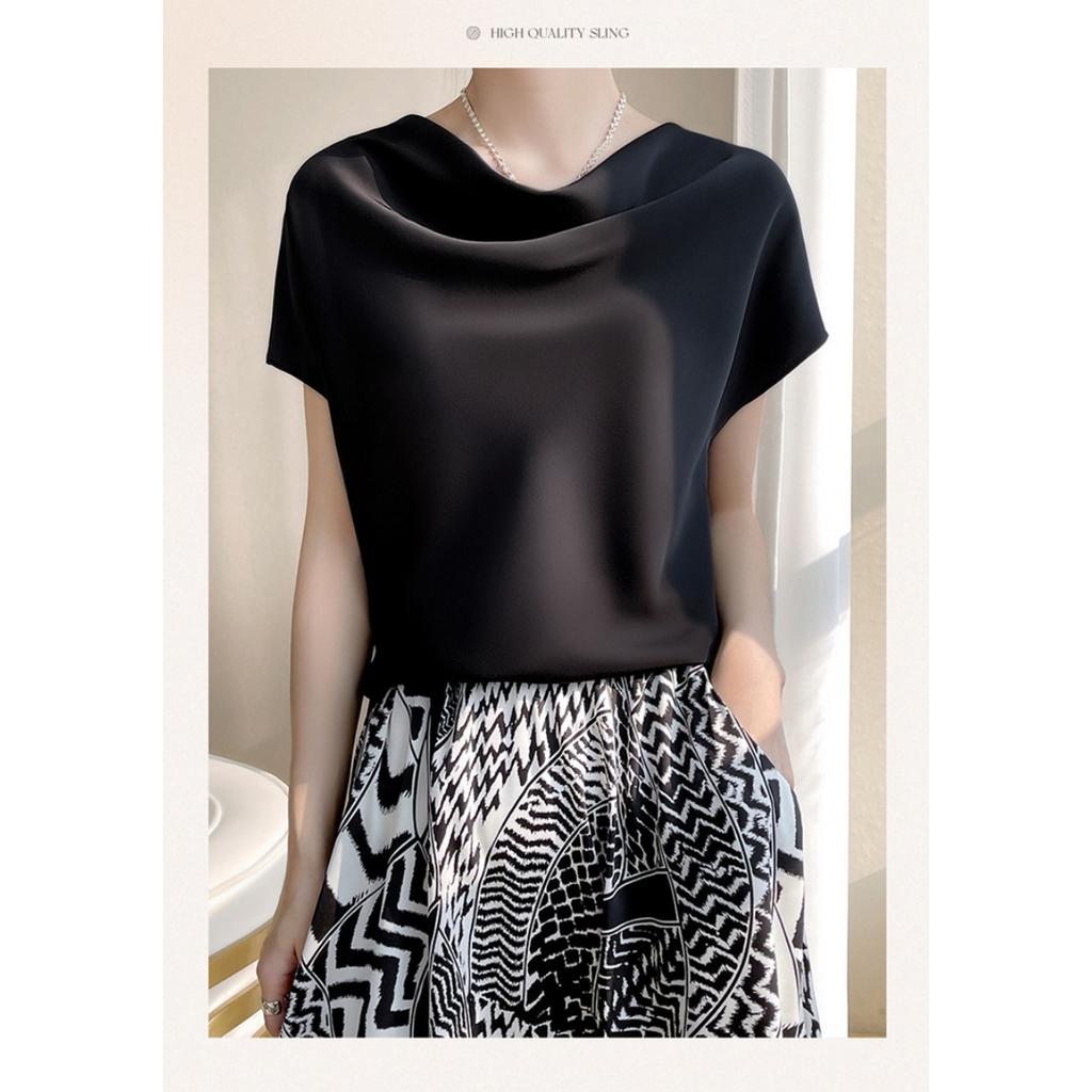 Весна и лето Новая женская мода Наборный воротник футболка с короткими рукавами, атласный тонкий темперамент в иностранном стиле универсальные топы