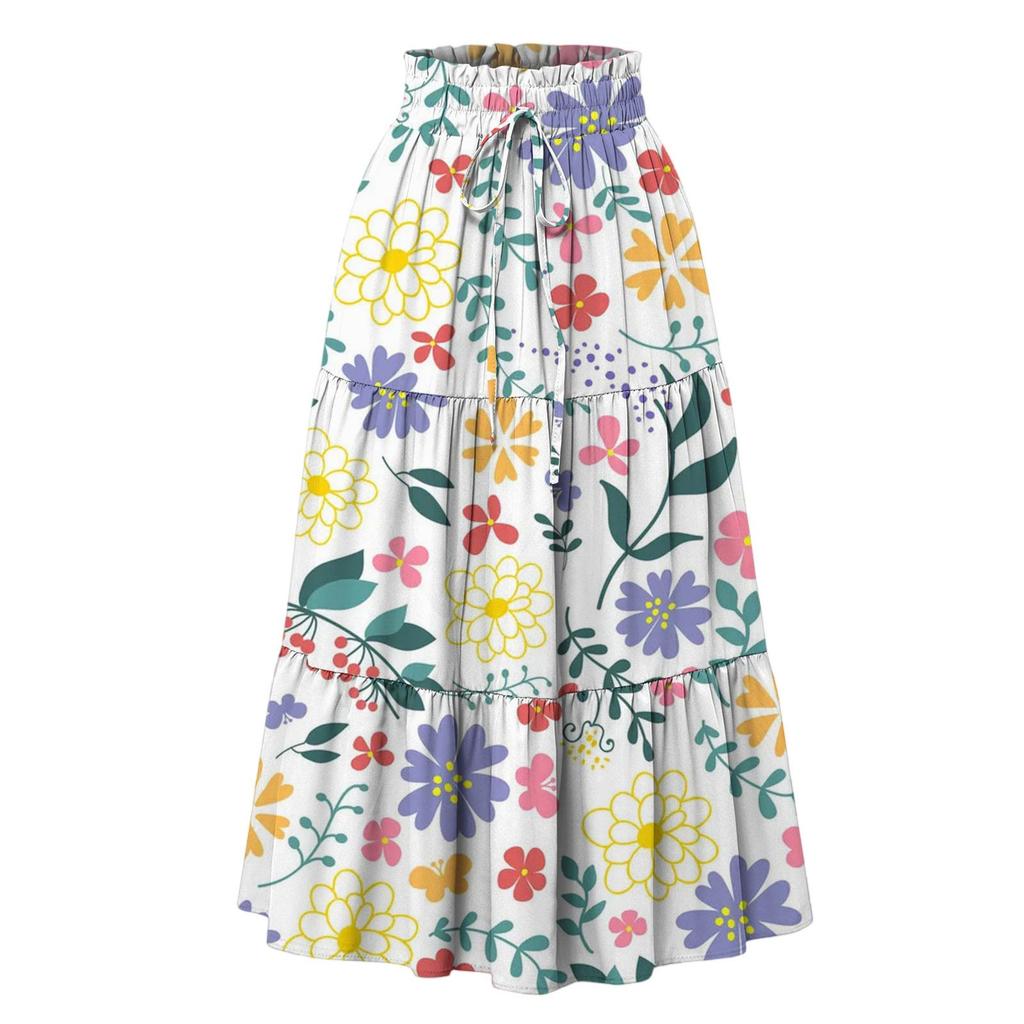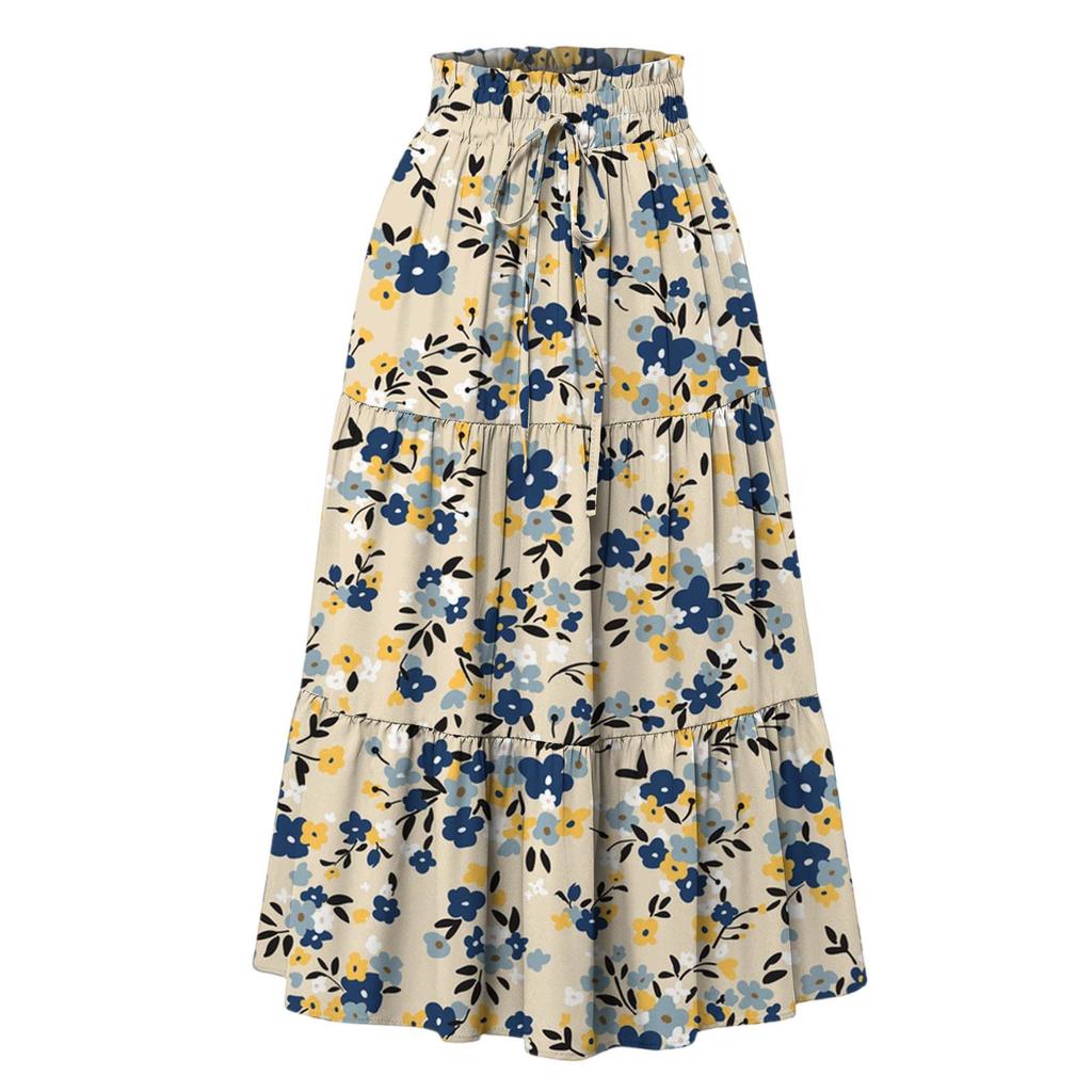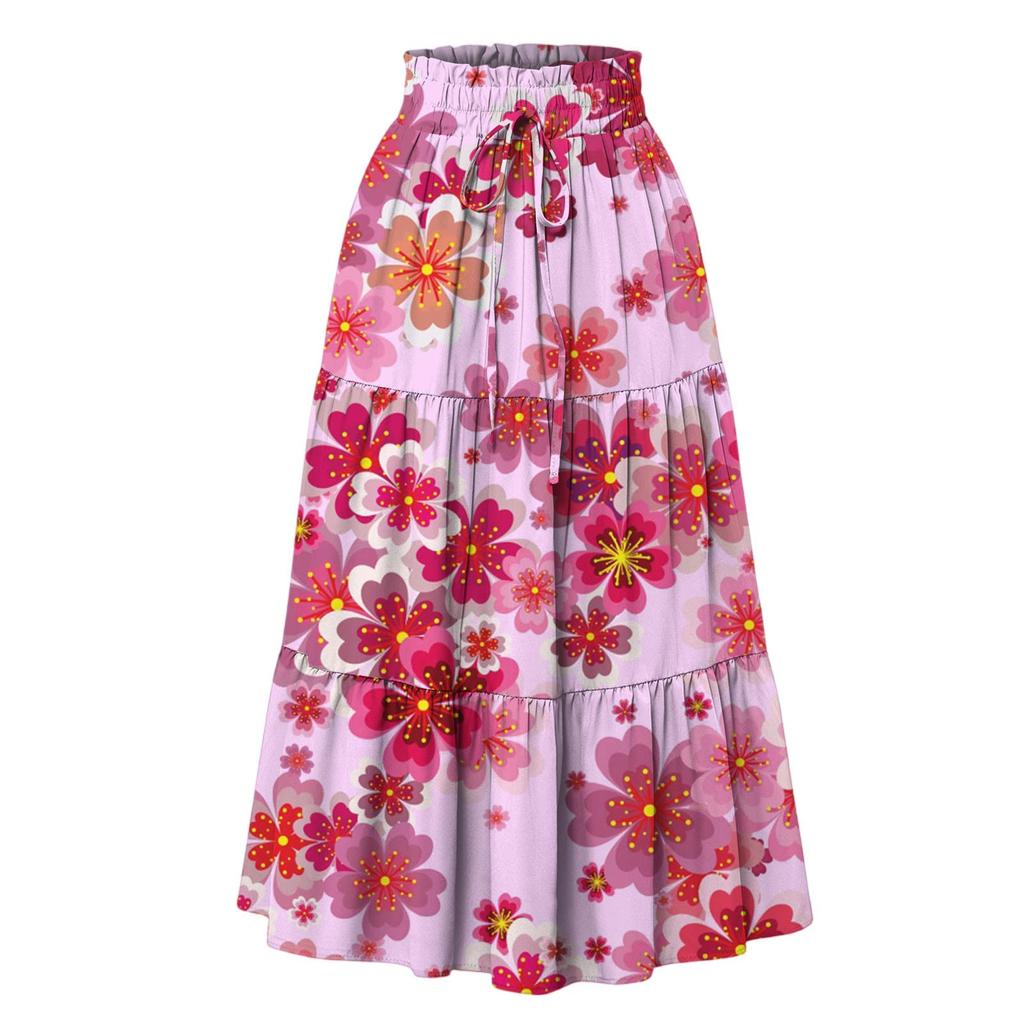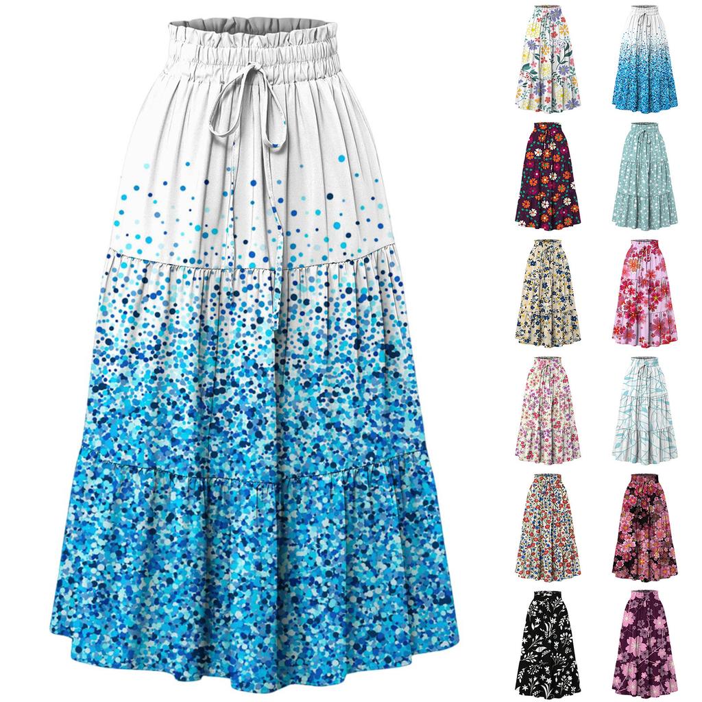 Женская модная юбка свободного покроя с цветочным принтом и эластичным поясом без карманов