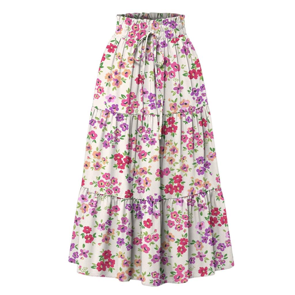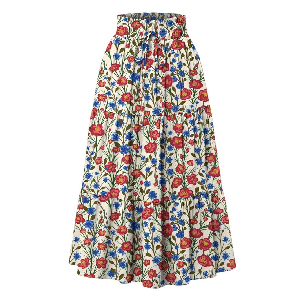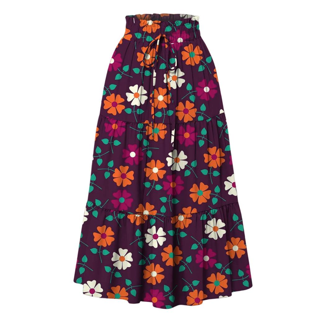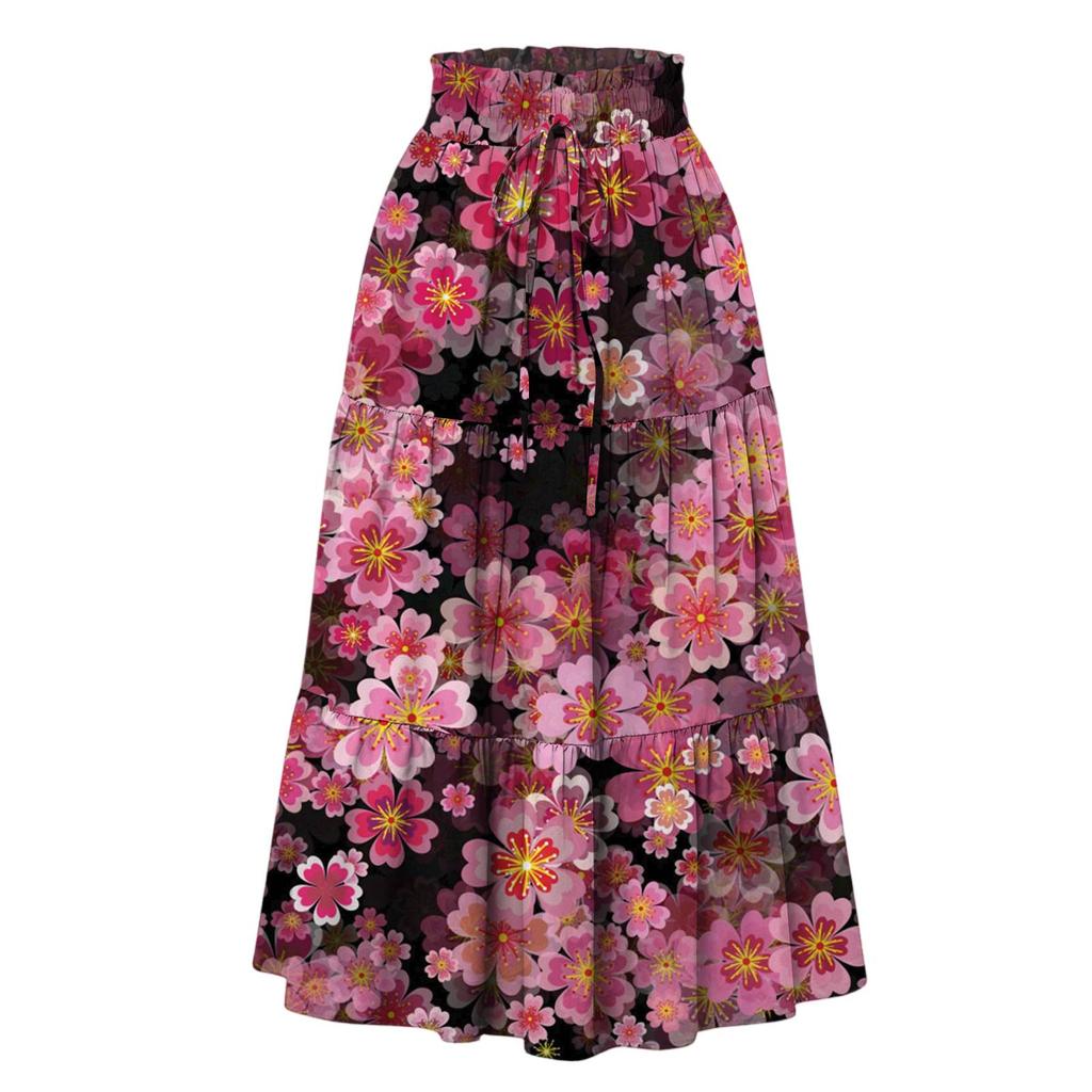 Женская модная юбка свободного покроя с цветочным принтом и эластичным поясом без карманов