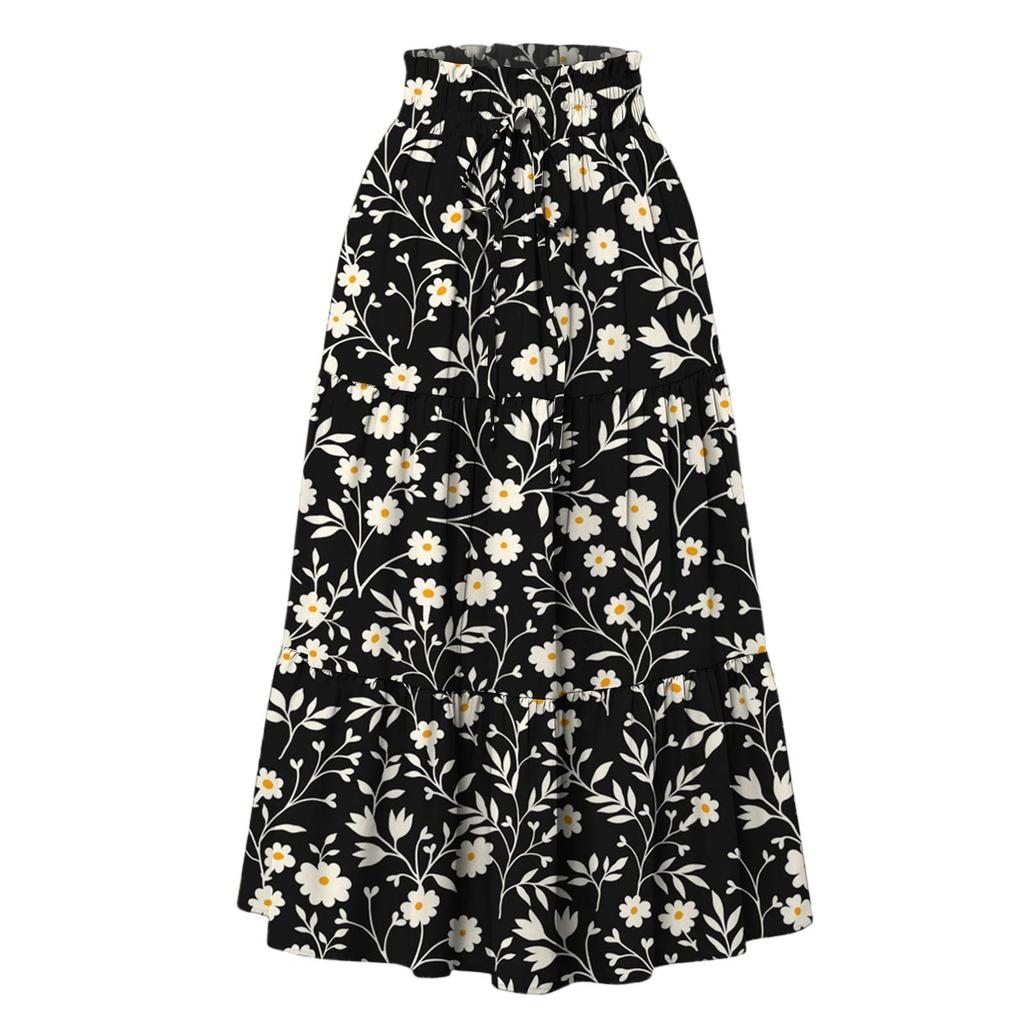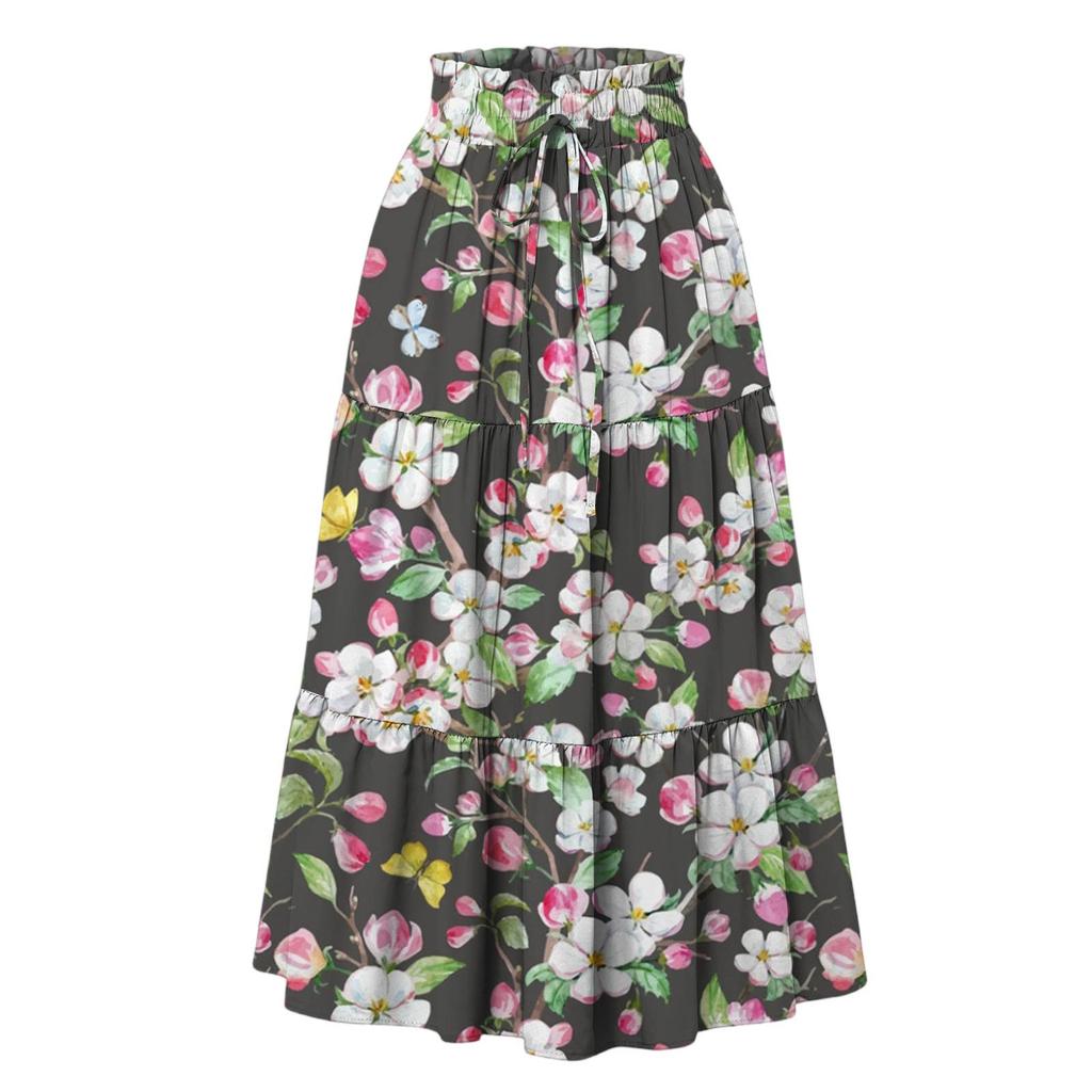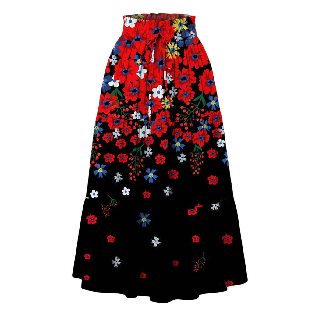 Женская модная юбка свободного покроя с цветочным принтом и эластичным поясом без карманов