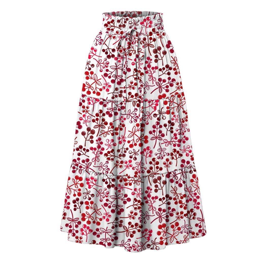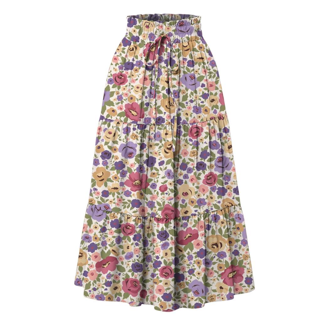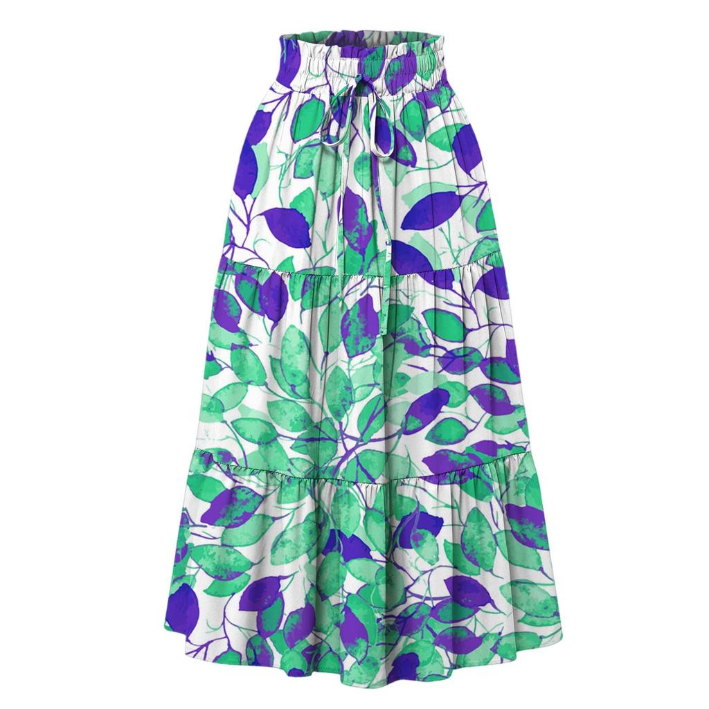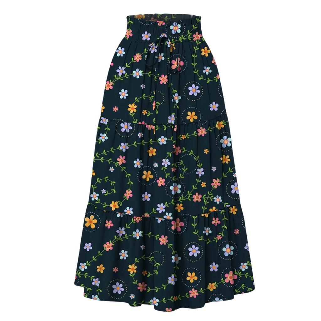 Женская модная юбка свободного покроя с цветочным принтом и эластичным поясом без карманов