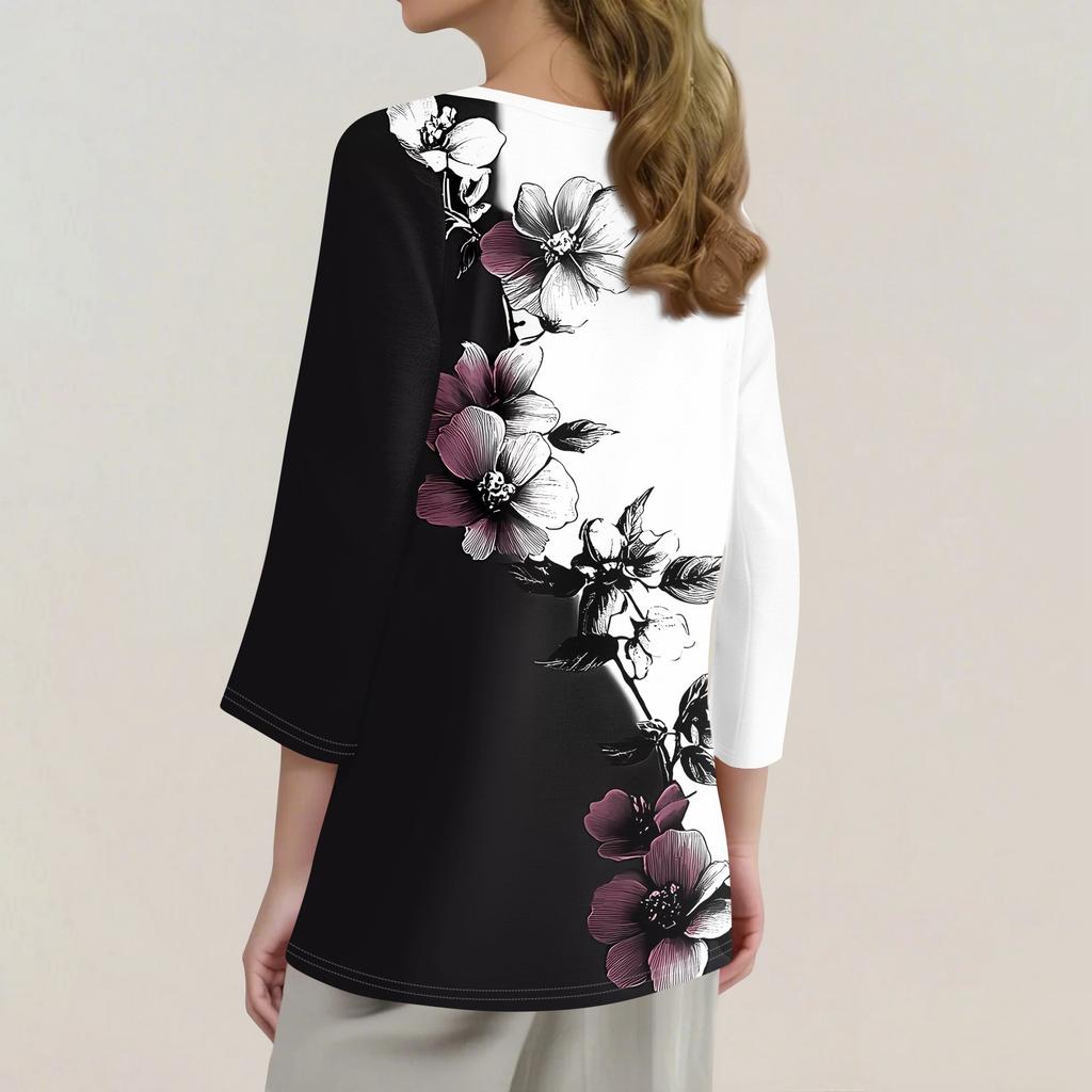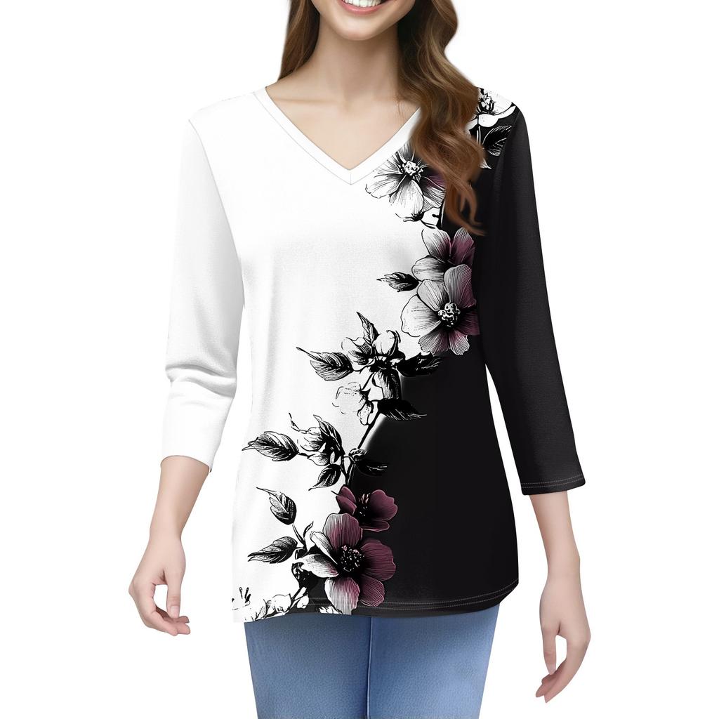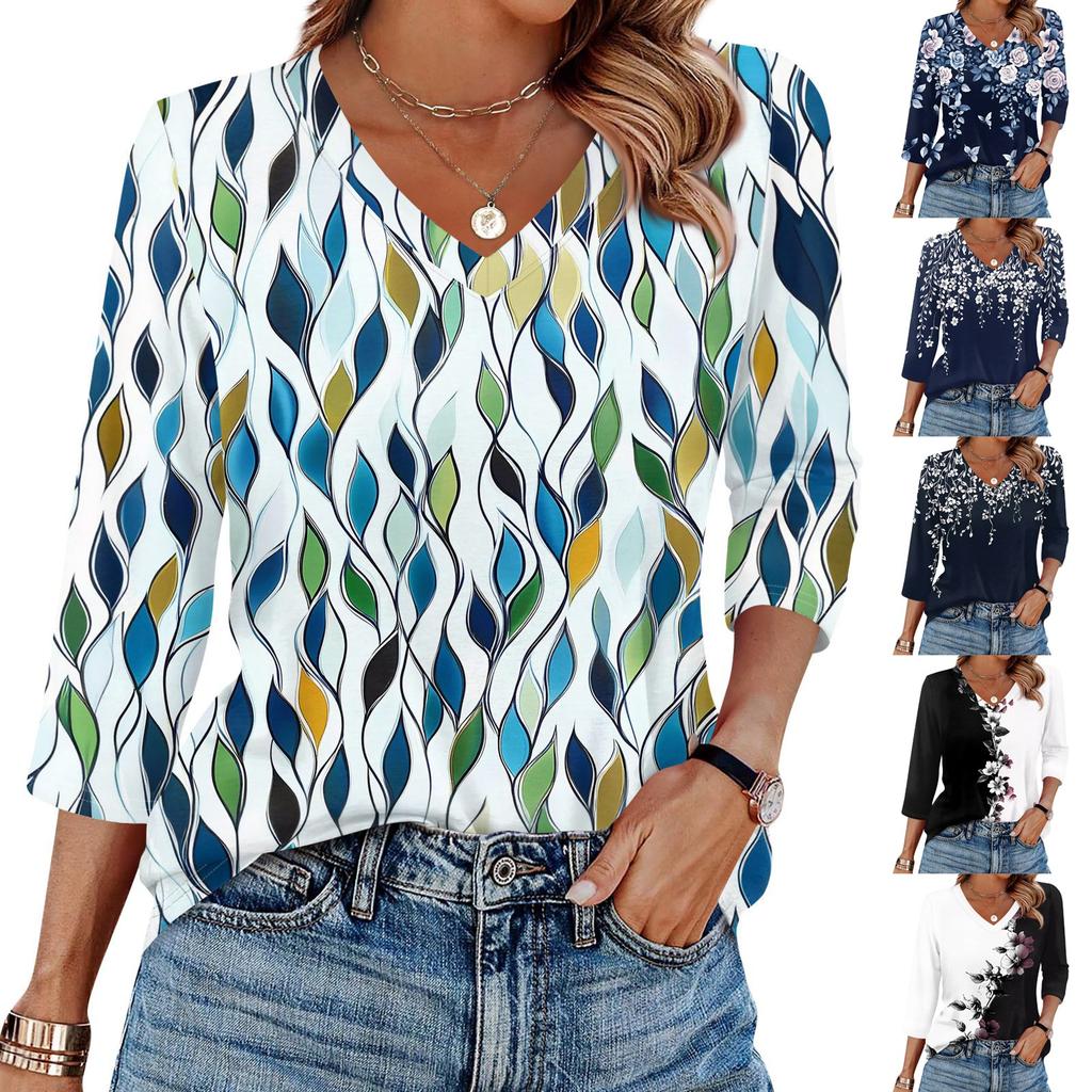 Женская футболка с принтом, рукав 3/4, повседневная мода на выходные, базовый топ с V-образным вырезом