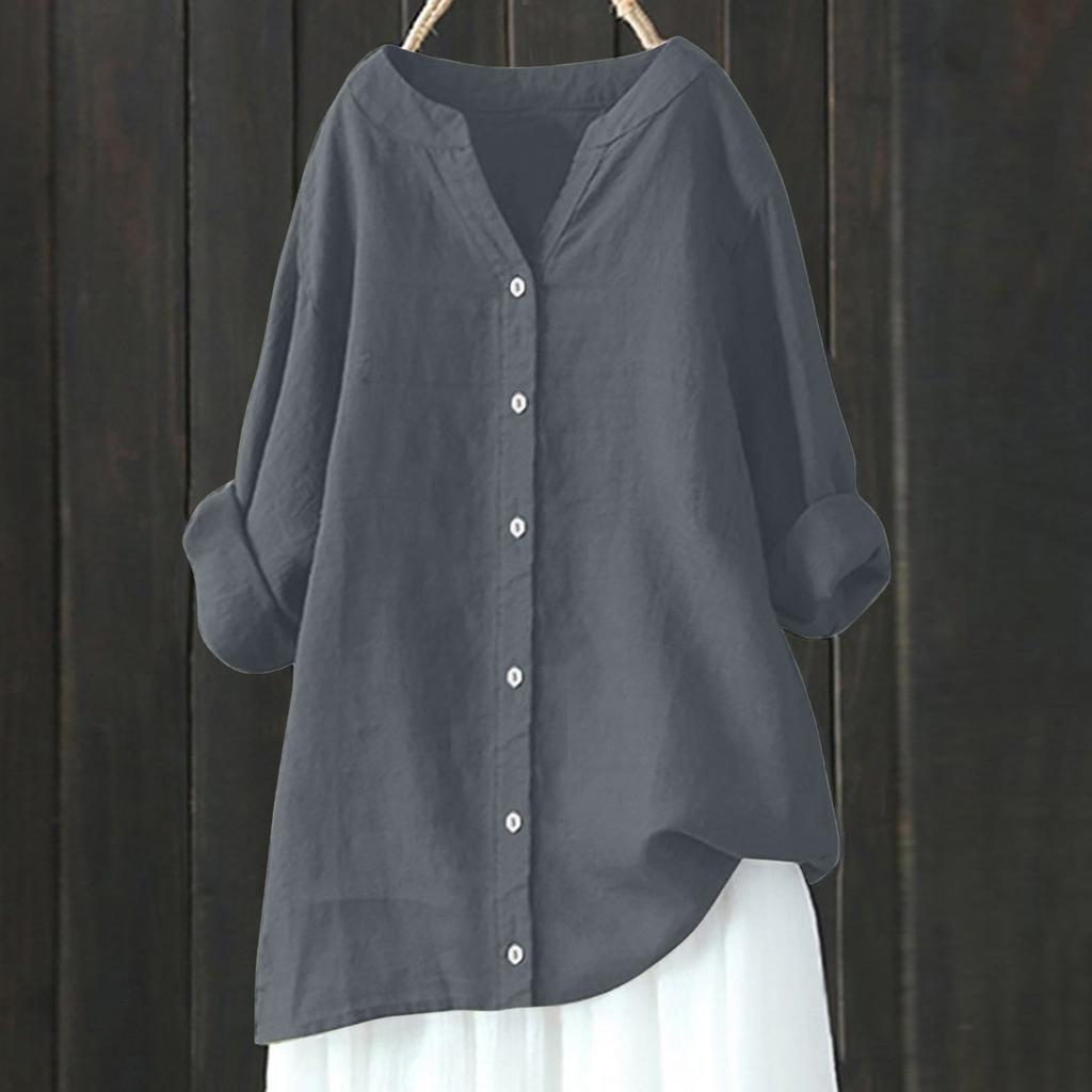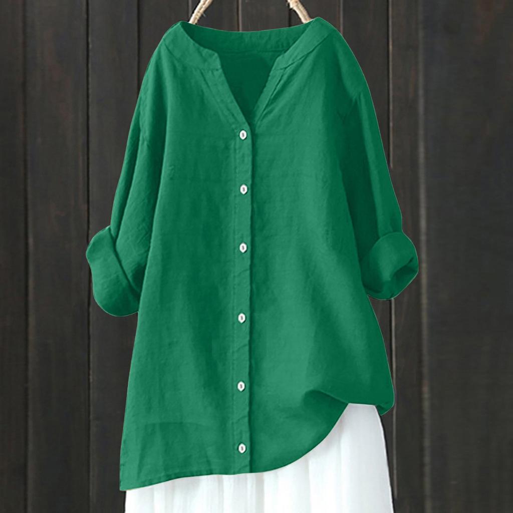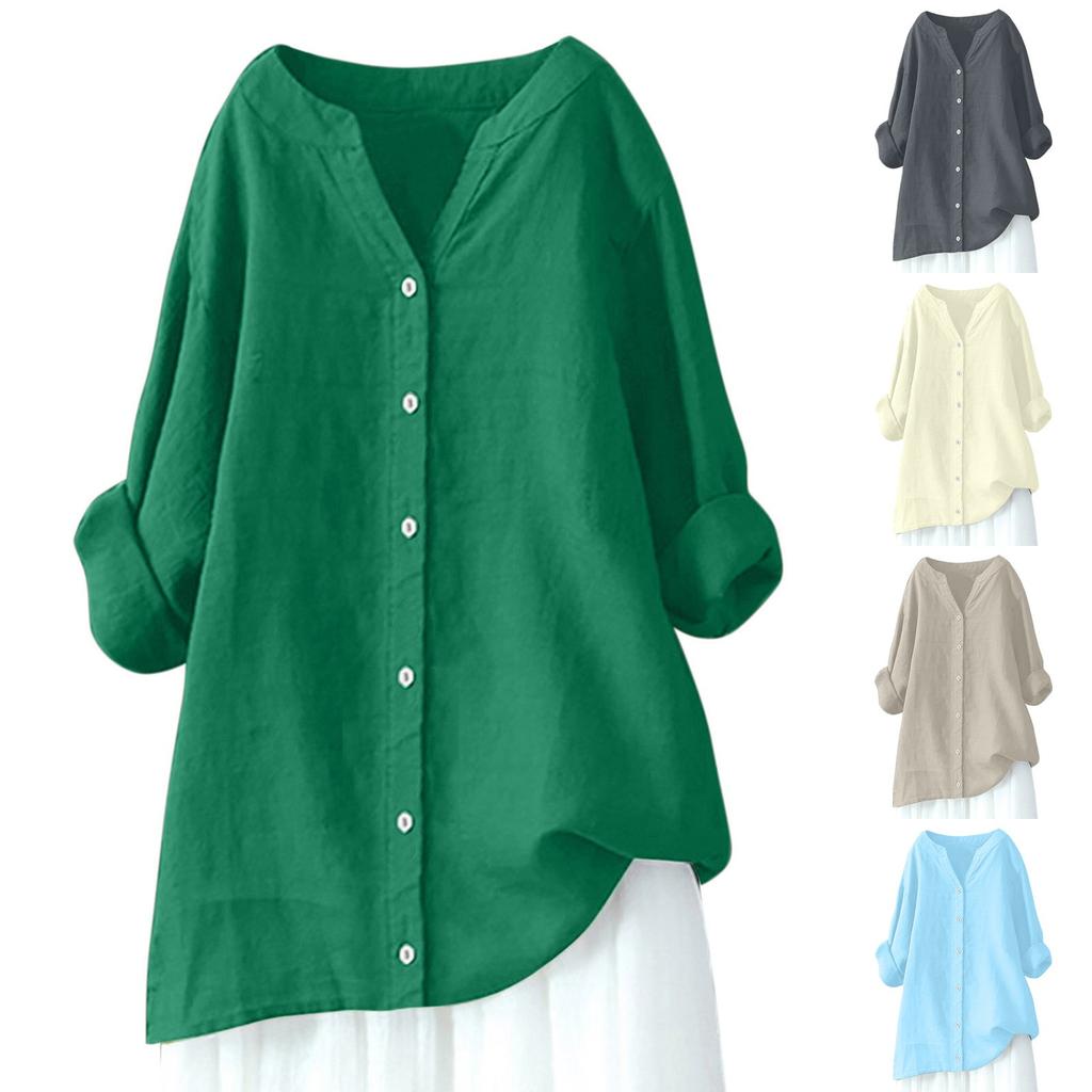 Женская модная однотонная рубашка с длинным рукавом и пуговицами, свободная рубашка, повседневная рубашка