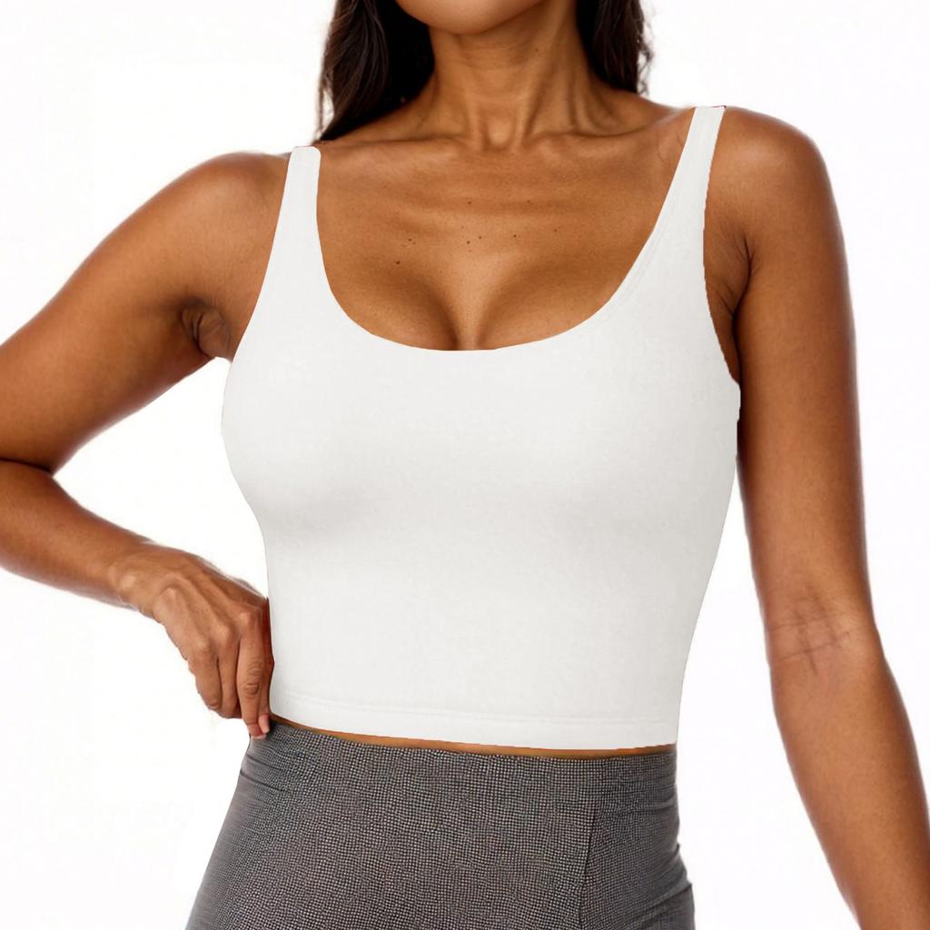 Женский однотонный короткий топ без рукавов с U-образным вырезом и жилетом с подкладкой на груди