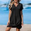 Женское модное однотонное платье-пуловер с V-образным вырезом и свободными карманами — купить товар онлайн с бесплатной доставкой по всему миру!