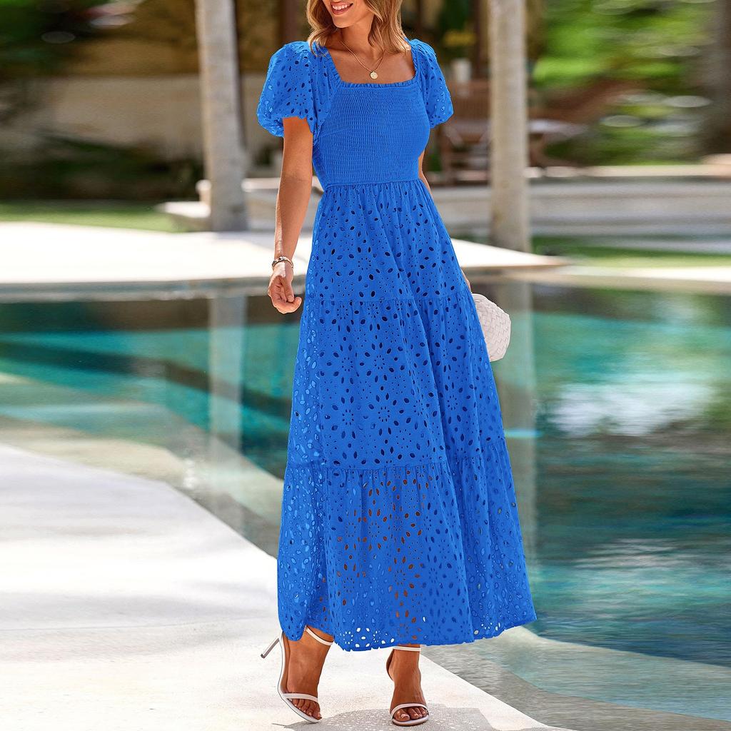 Женское модное однотонное платье с квадратным вырезом и рукавами-фонариками, плиссированное с короткими рукавами