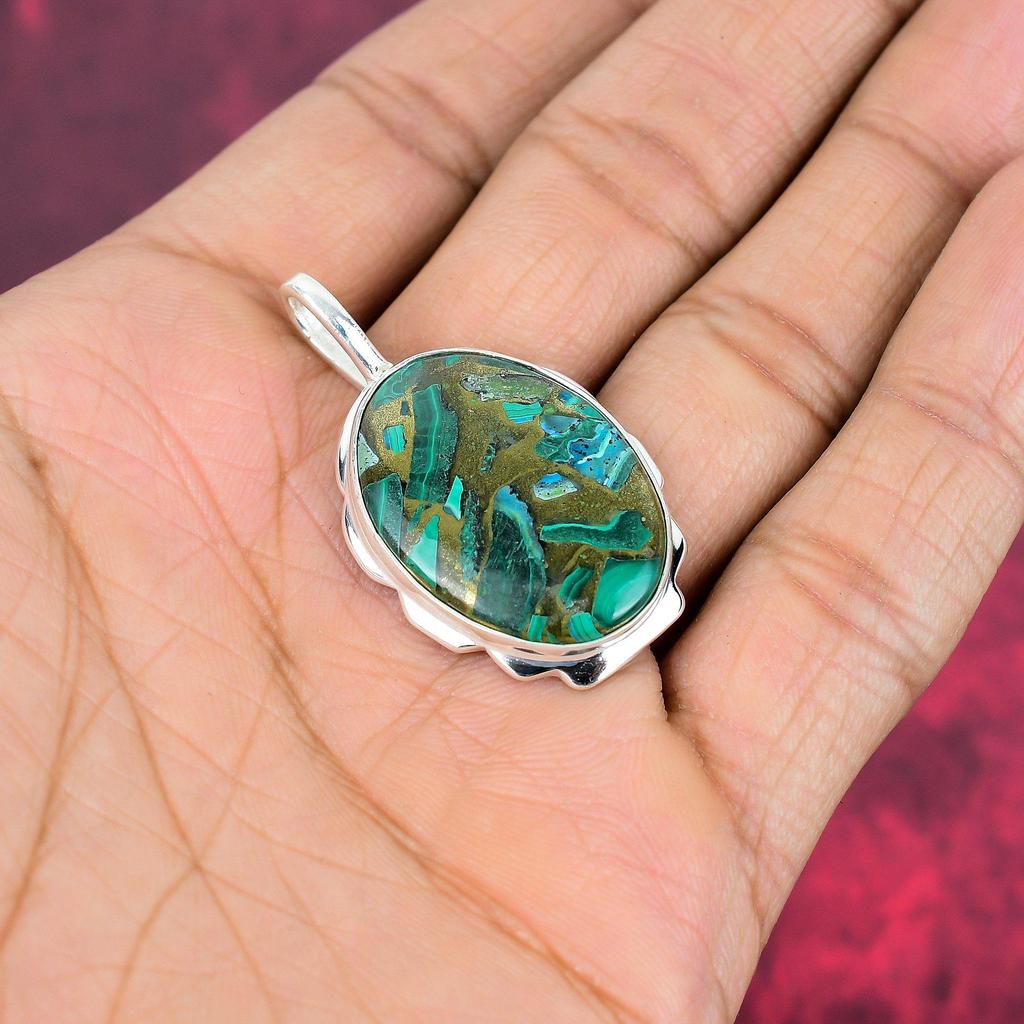 Подвеска из меди и лазурита, малахита, ювелирные изделия из цельного серебра 925 пробы с драгоценными камнями, подвеска ручной работы, на День памяти
