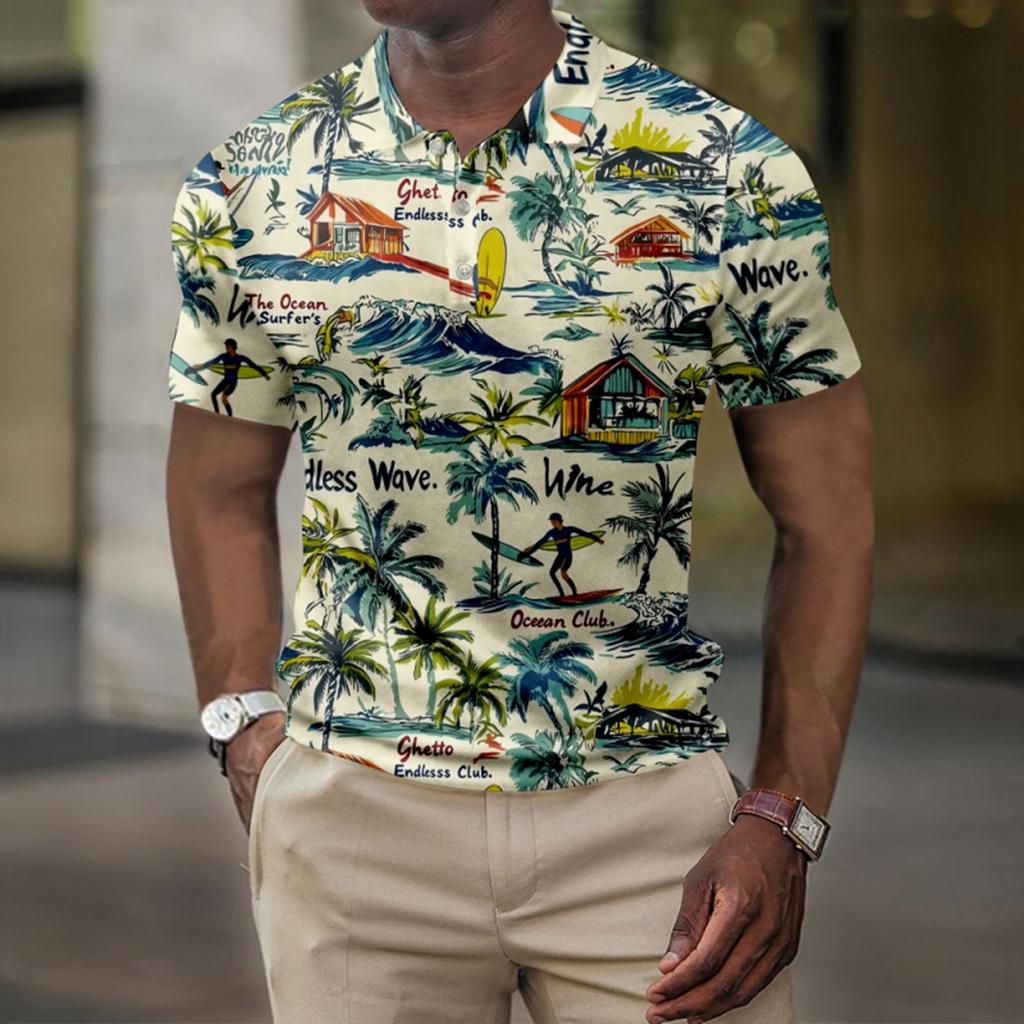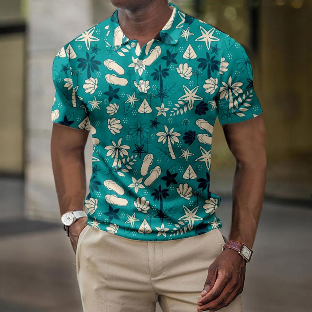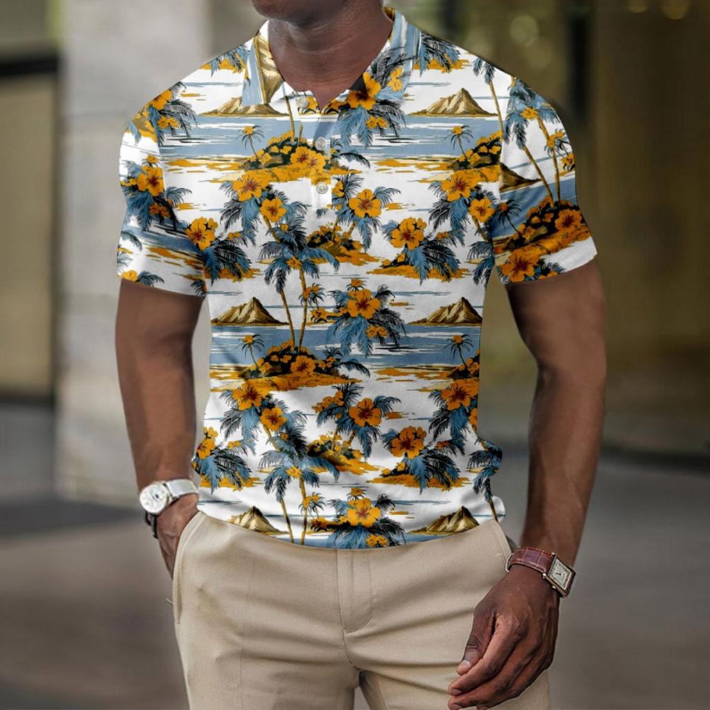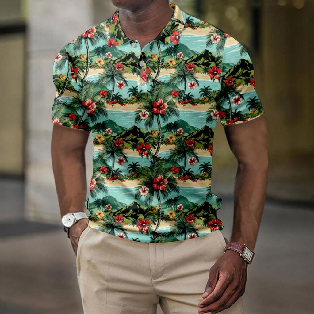 Мужская летняя рубашка для гольфа с принтом «Гавайи», с короткими рукавами, повседневная модная рубашка для мужчин