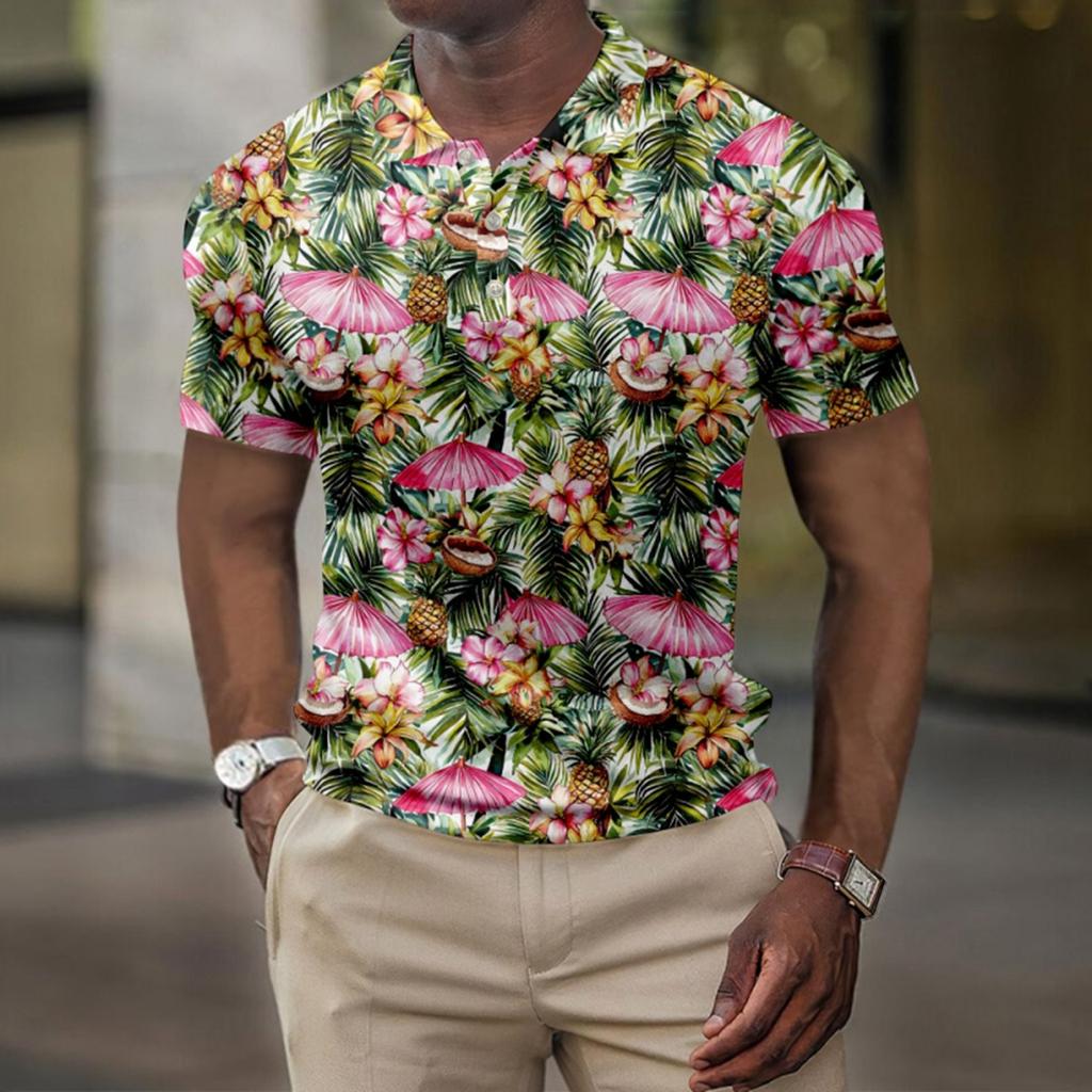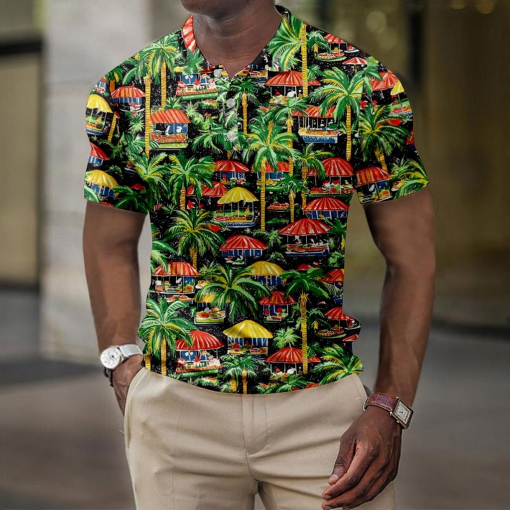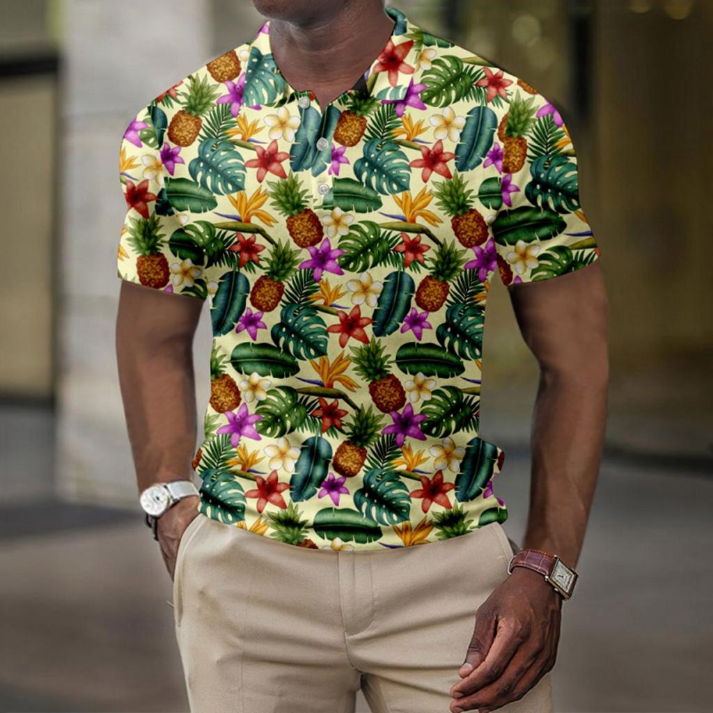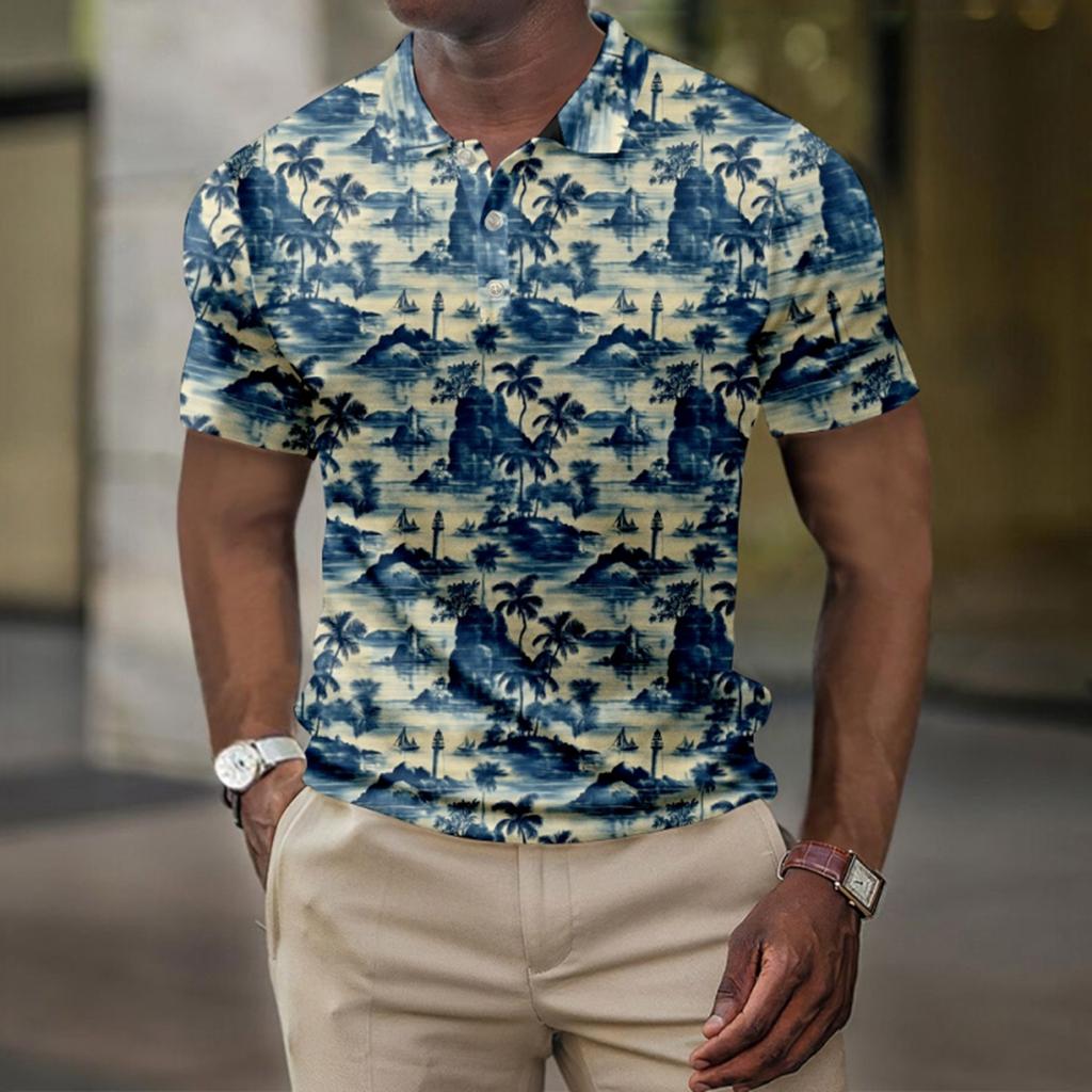 Мужская летняя рубашка для гольфа с принтом «Гавайи», с короткими рукавами, повседневная модная рубашка для мужчин
