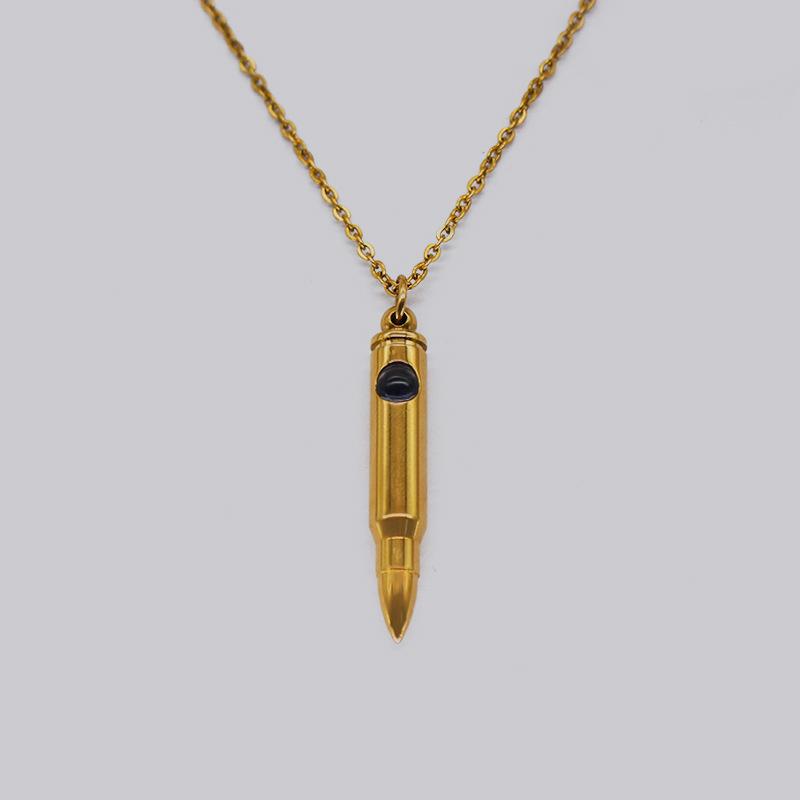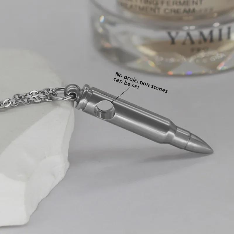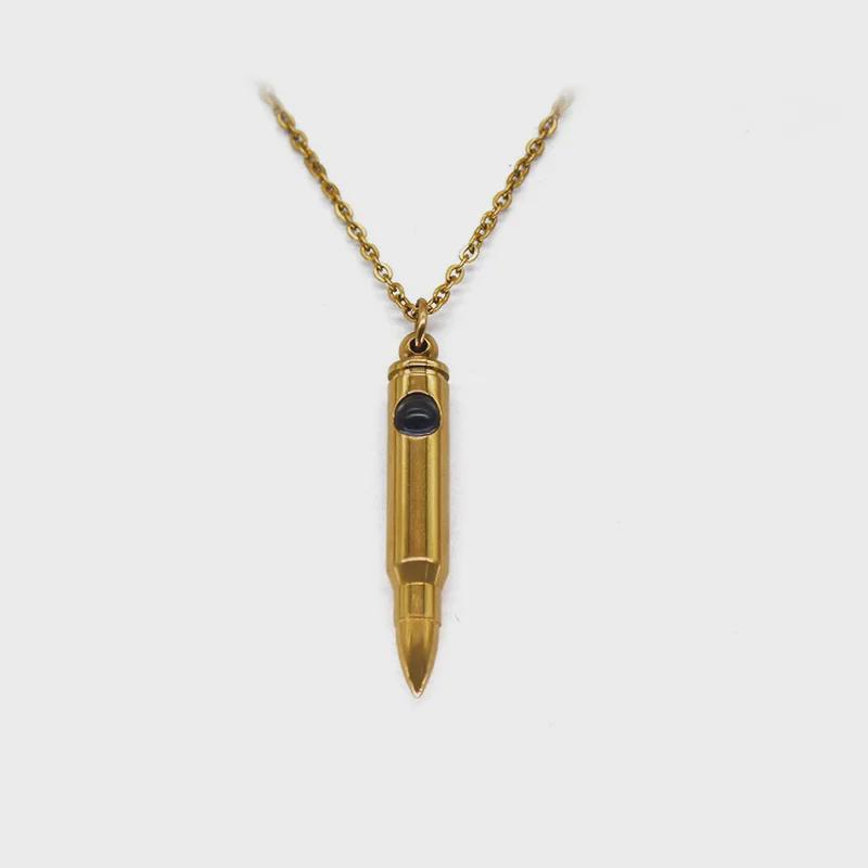 Ожерелье с подвеской в виде пули в память о ветеранах с выступающим камнем - цепочка на ключицу из титановой стали