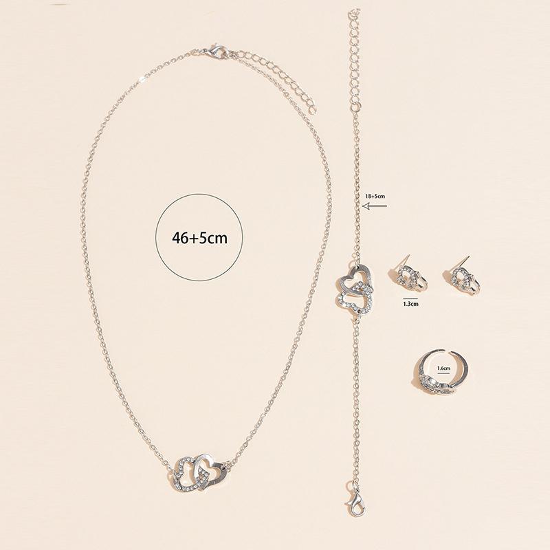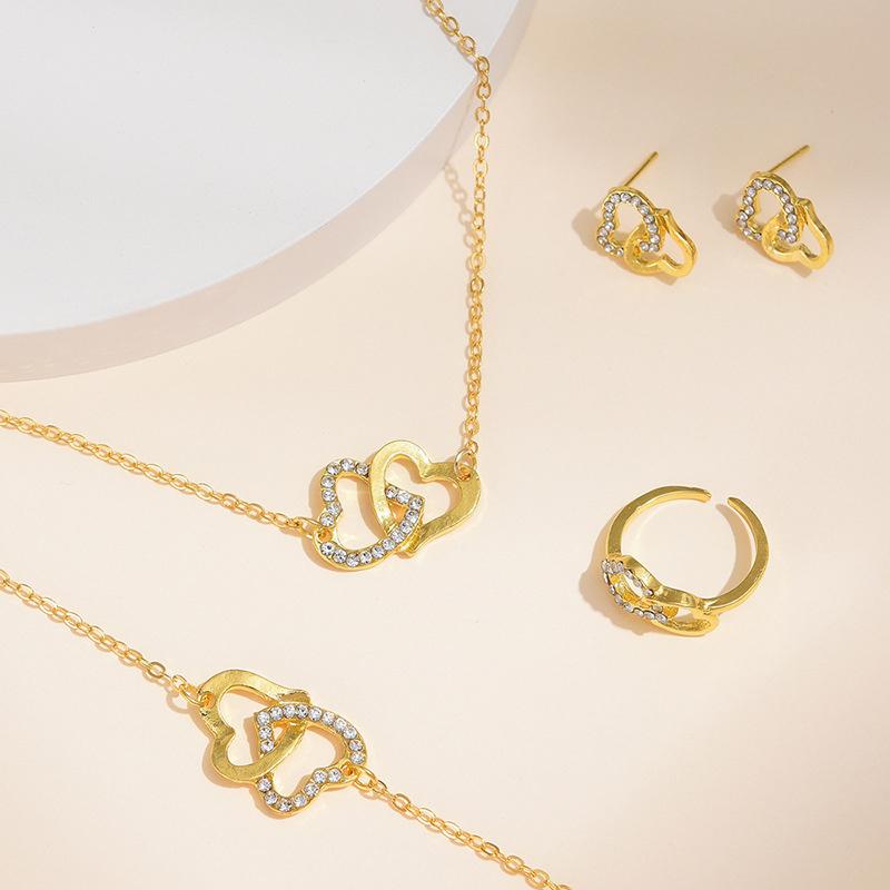 5 шт./компл. комплекты украшений в форме сердца из колец, сережек, ожерелий для женщин, элегантные двойные украшения в форме сердца