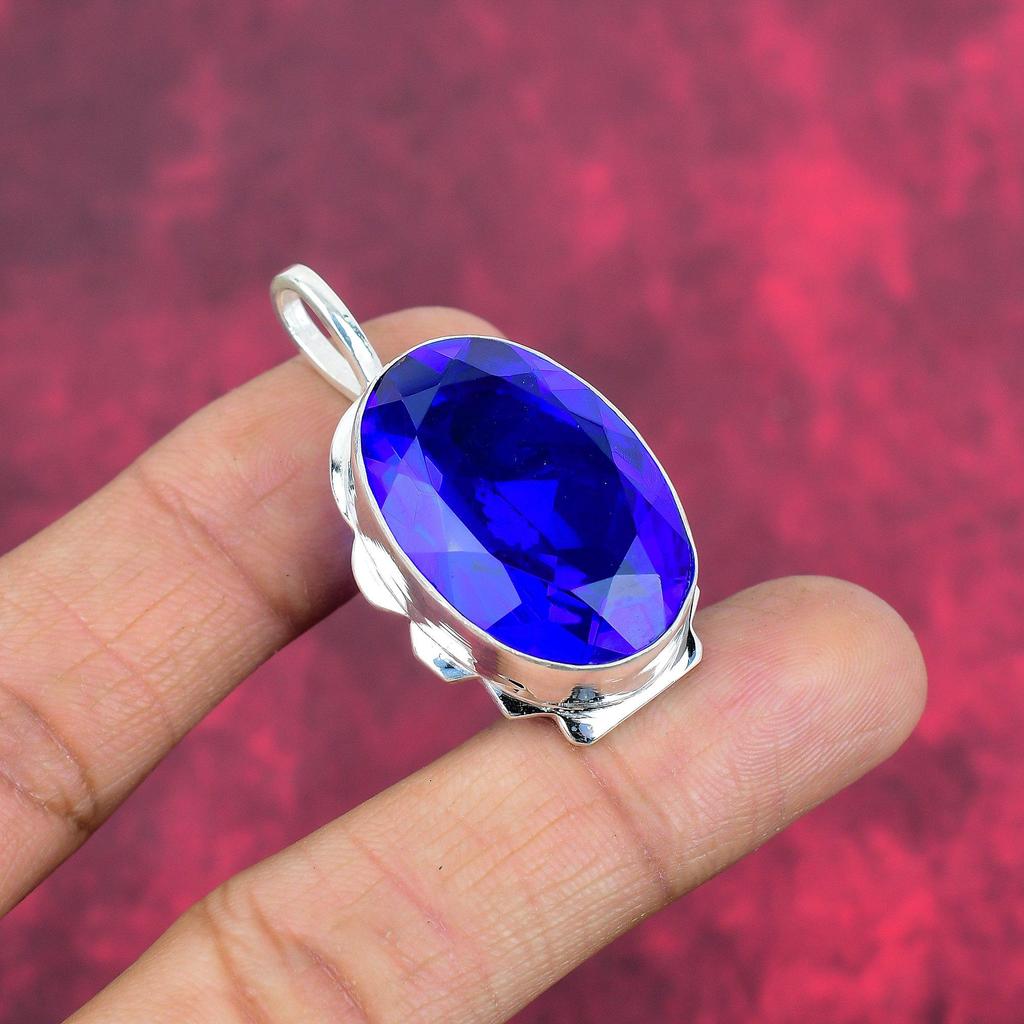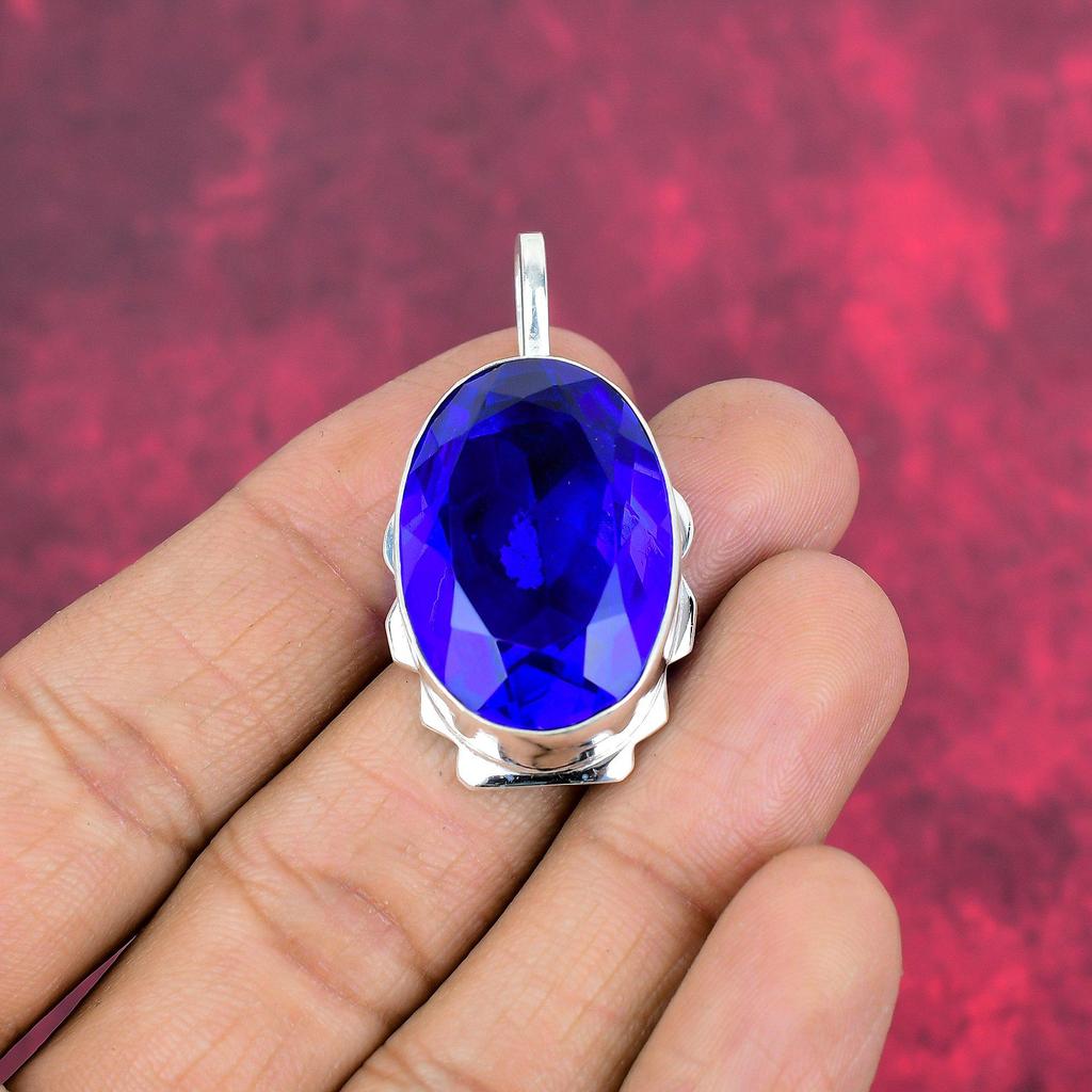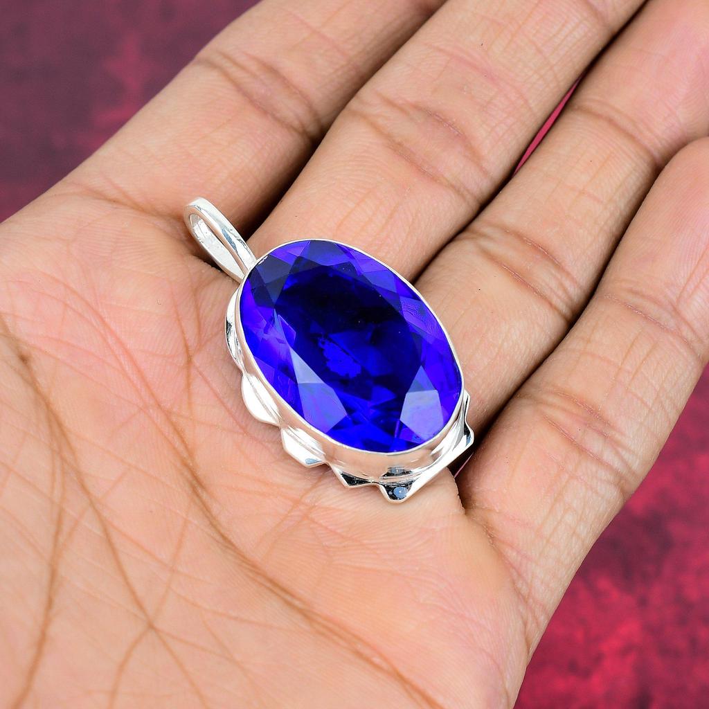 Подвеска из стерлингового серебра 925 пробы с сапфиром, подвеска из драгоценного камня ручной работы, подарок жене, абсолютно новая подвеска