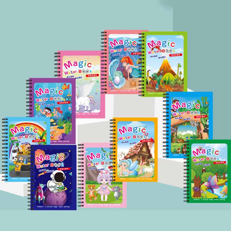 Волшебное раскрытие с помощью воды: Просто покрасьте чистой водой, чтобы проявить яркие цвета. Краска высыхает и исчезает, ее можно использовать повторно бесконечно!