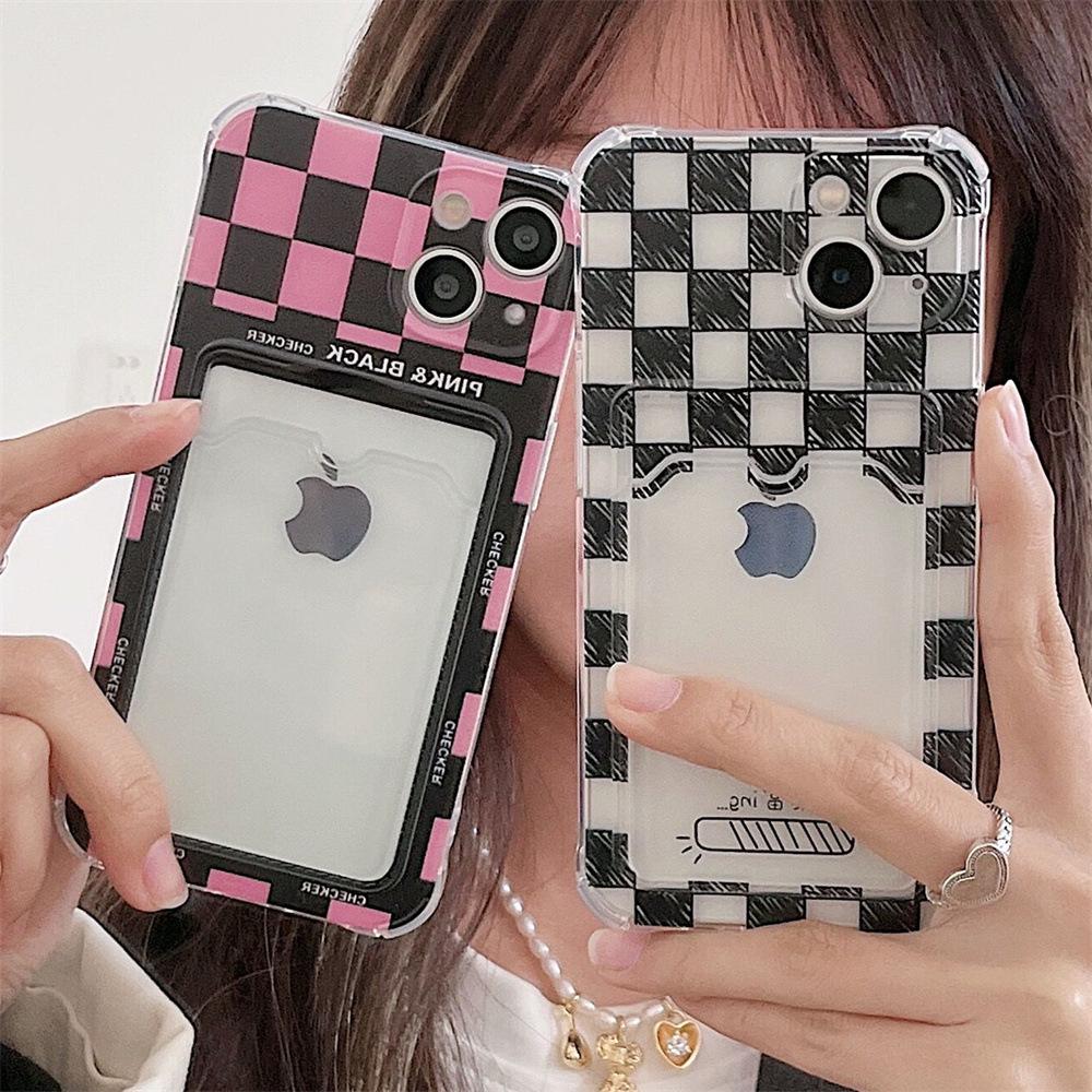Прозрачный чехол для телефона с шахматным слотом для карт для iPhone 11/12 Pro/13/14/15/16 Pro Max — купить товар онлайн с бесплатной доставкой по всему миру!