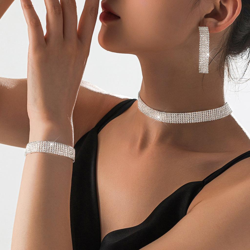Новые модные блестящие ожерелья, серьги, браслет, комплект, серьги и аксессуары в роскошном стиле