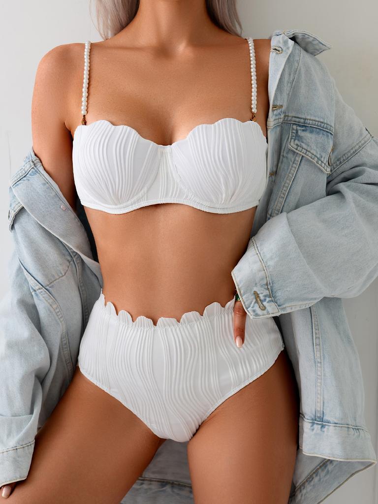 Сплошной жемчуг бикини женский пуш-ап купальник с ракушками оборки высокая талия купальник женский купальный костюм пляжная одежда — купить товар онлайн с бесплатной доставкой по всему миру!