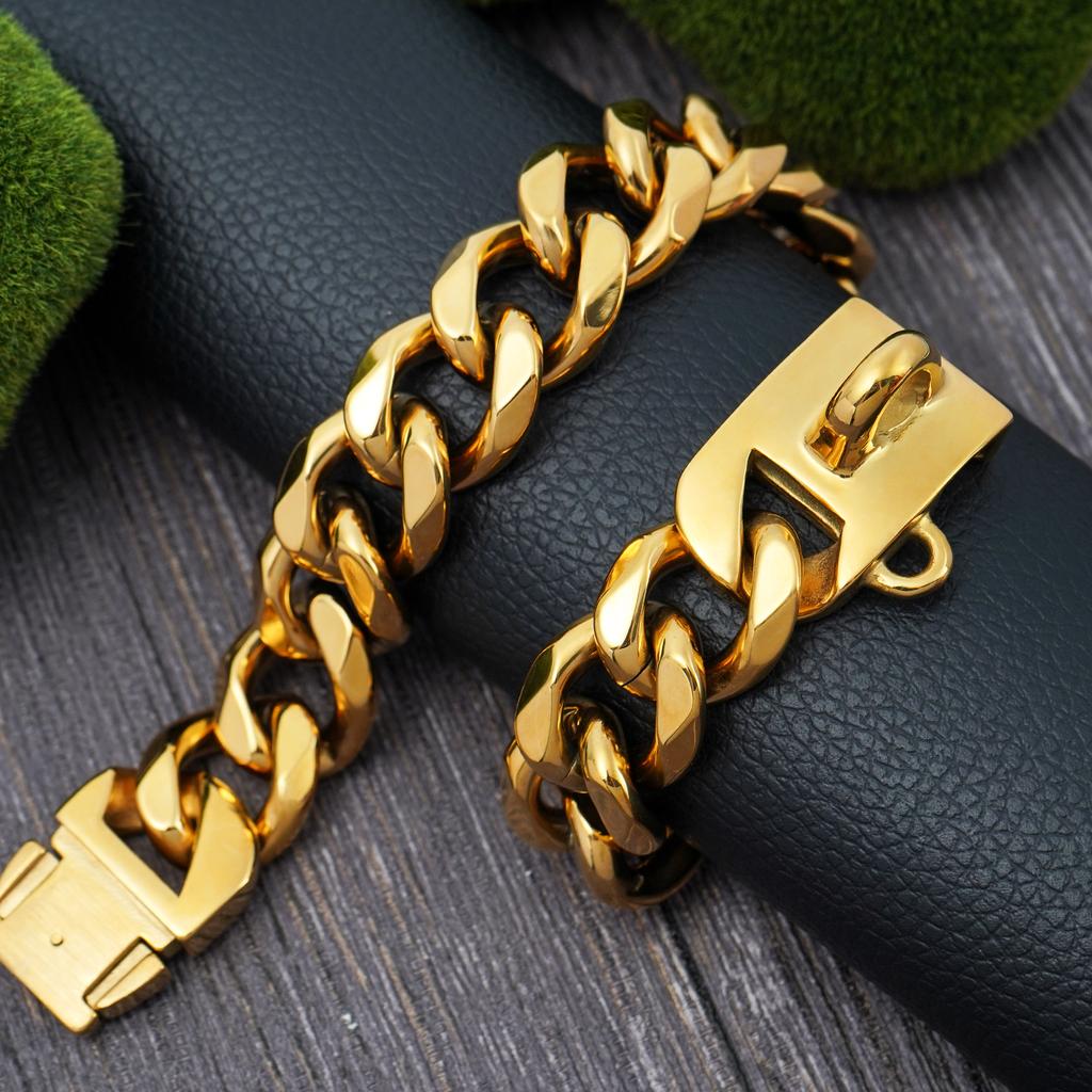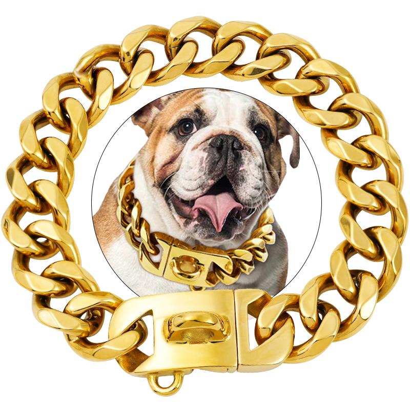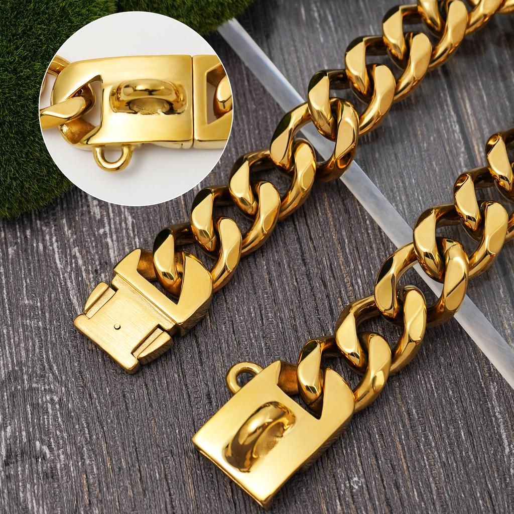 23 мм ошейник из золотой цепи для собак из нержавеющей стали с кубинским звеном Heavy Duty Bull для больших собак