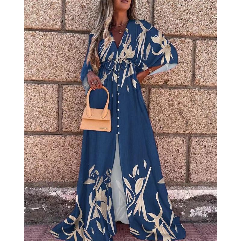 Сексуальное однобортное пляжное платье с V-образным вырезом и шнуровкой с принтом Женская одежда