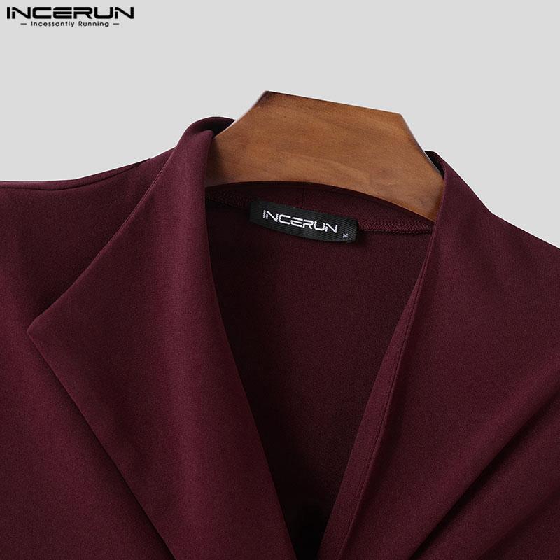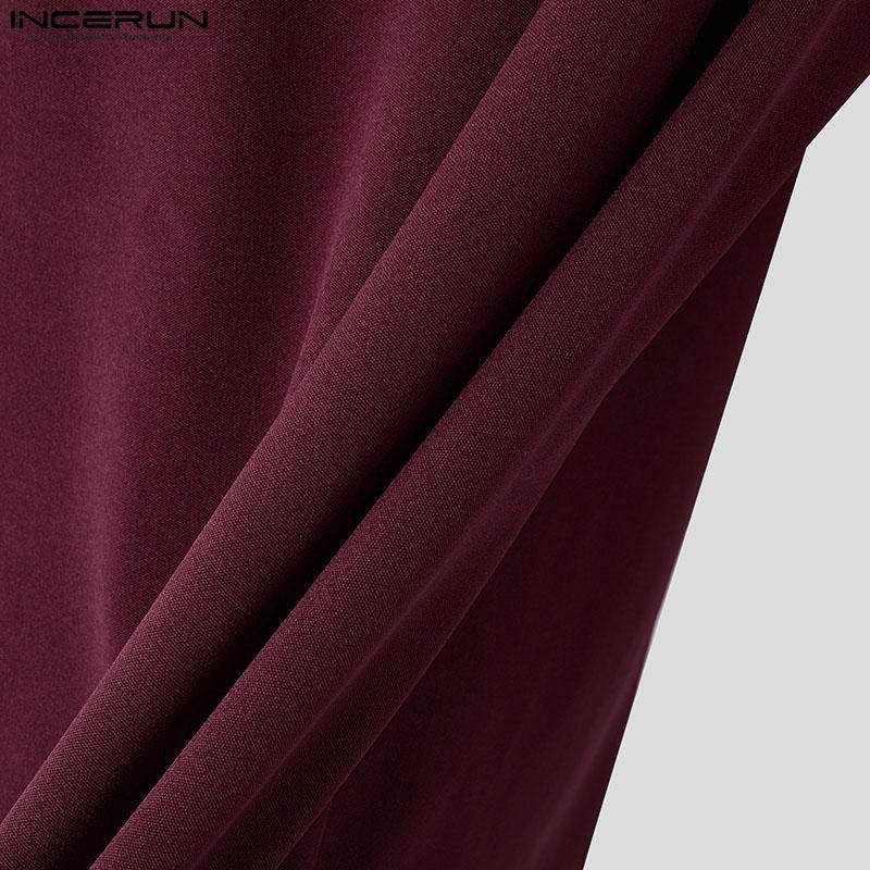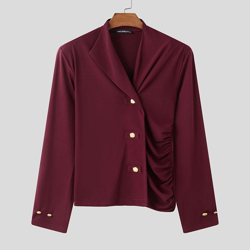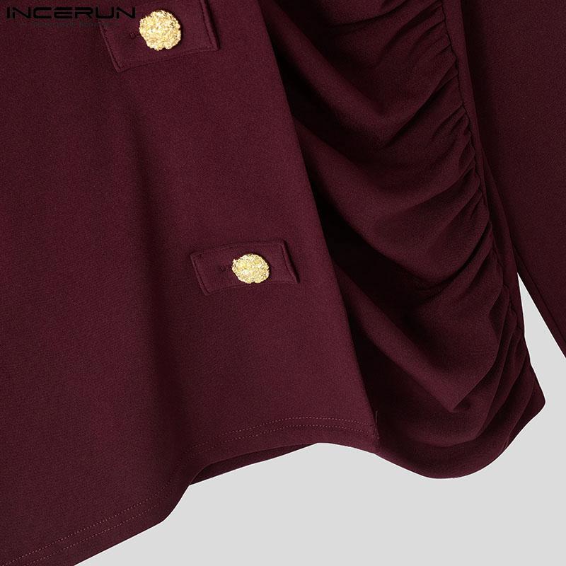 INCERUN Весенние мужские рубашки с длинным рукавом и боковыми пуговицами, повседневные топы с оборками