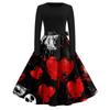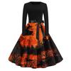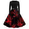 Платье-клеш с принтом на Хэллоуин для женщин с длинным рукавом, повседневные платья с круглым вырезом и ажурной отделкой