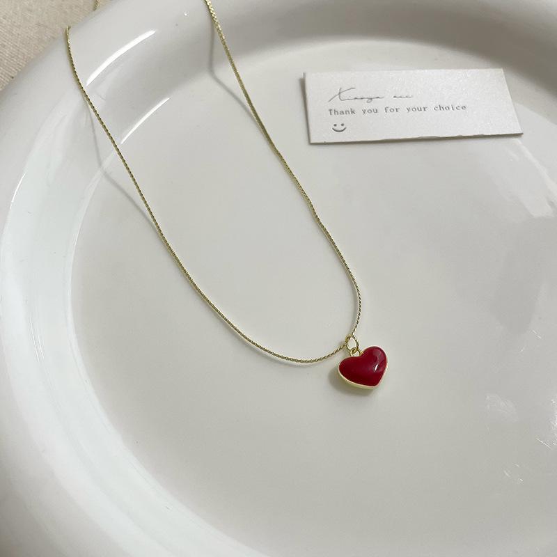 Женское ожерелье из титановой стали с красным сердцем 2023 года — маленькая ключичная цепочка с подвеской в виде персикового сердца — купить товар онлайн с бесплатной доставкой до всему миру!