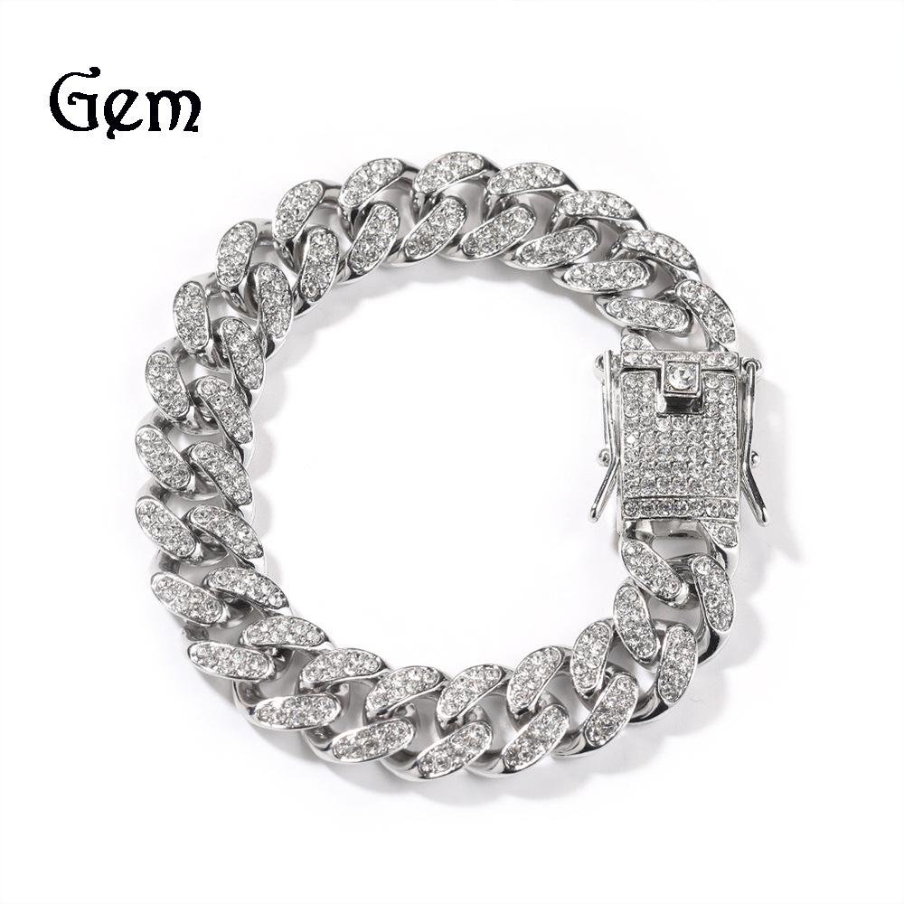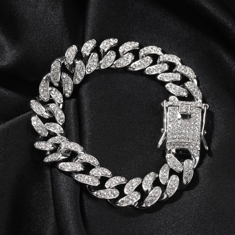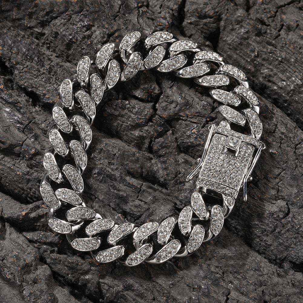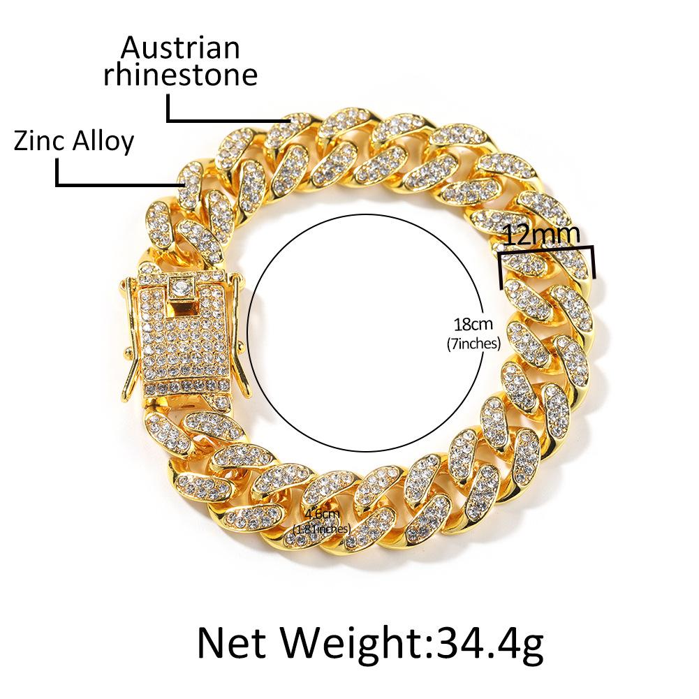 12-миллиметровая кубинская цепочка с бриллиантами, стильный браслет из сплава в стиле хип-хоп