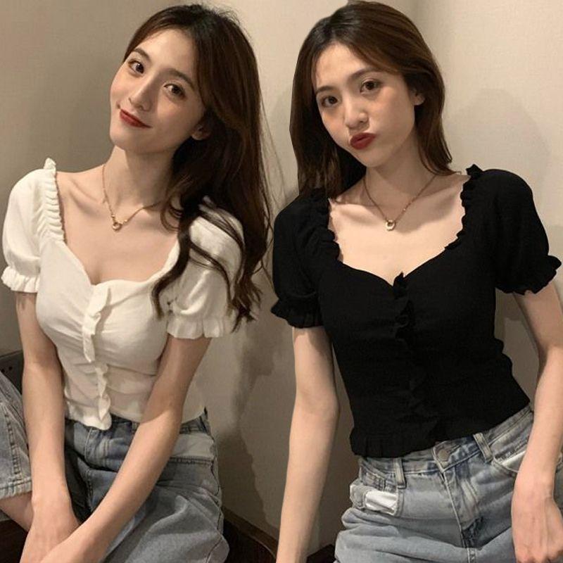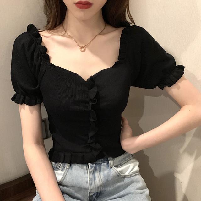 Вязаный свитер с V-образным вырезом до ключиц во французском стиле на лето, женская футболка с коротким рукавом большого размера