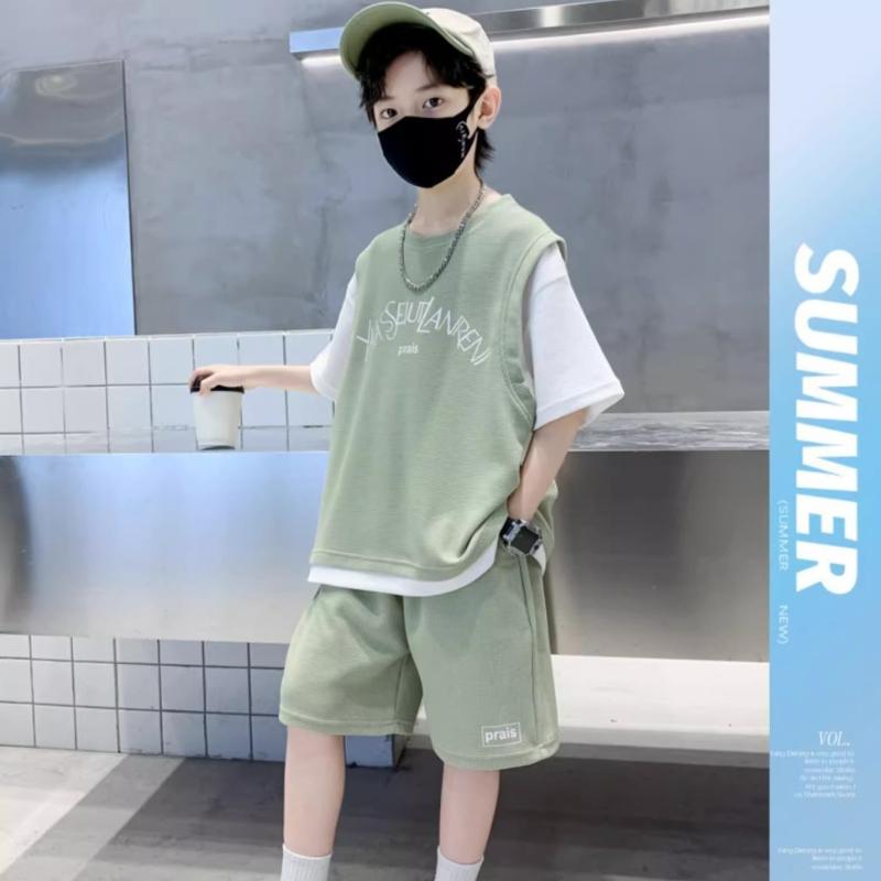 Модный повседневный костюм для мальчиков, новый детский костюм с короткими рукавами, летний красивый комплект из двух частей, прилив