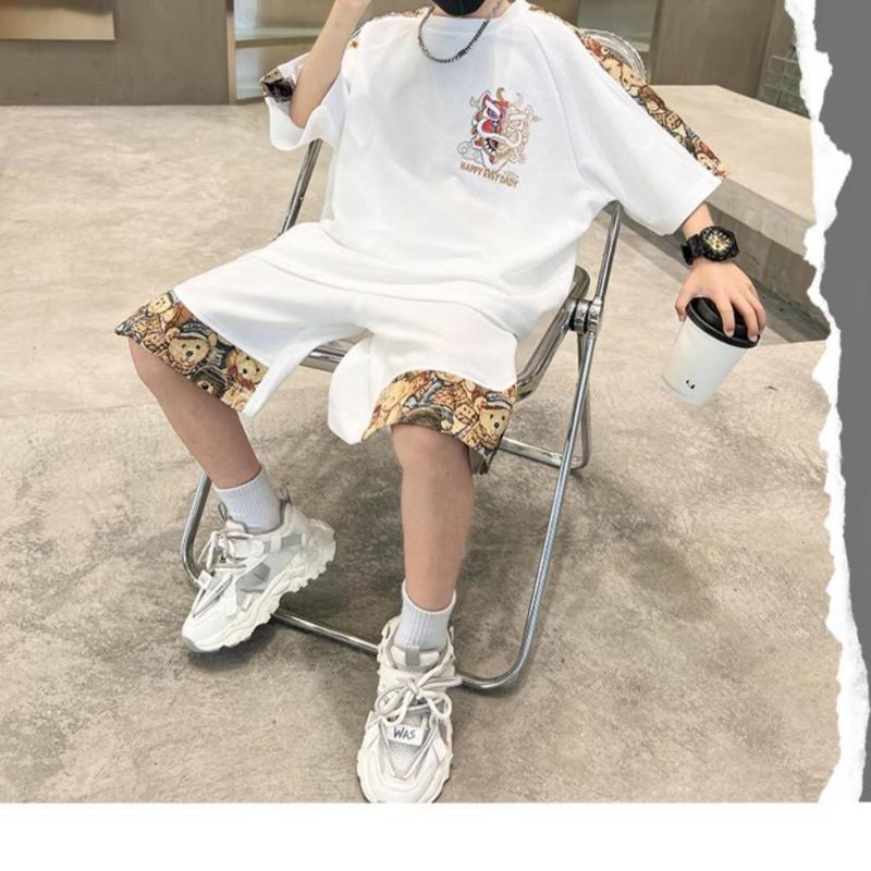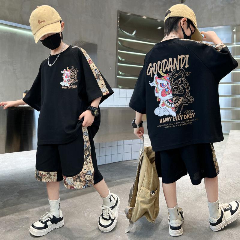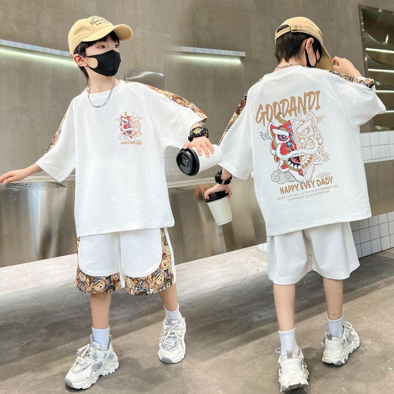 Детская одежда для мальчиков летний костюм с короткими рукавами новый детский летний спортивный комплект из двух предметов для детей среднего и большого возраста