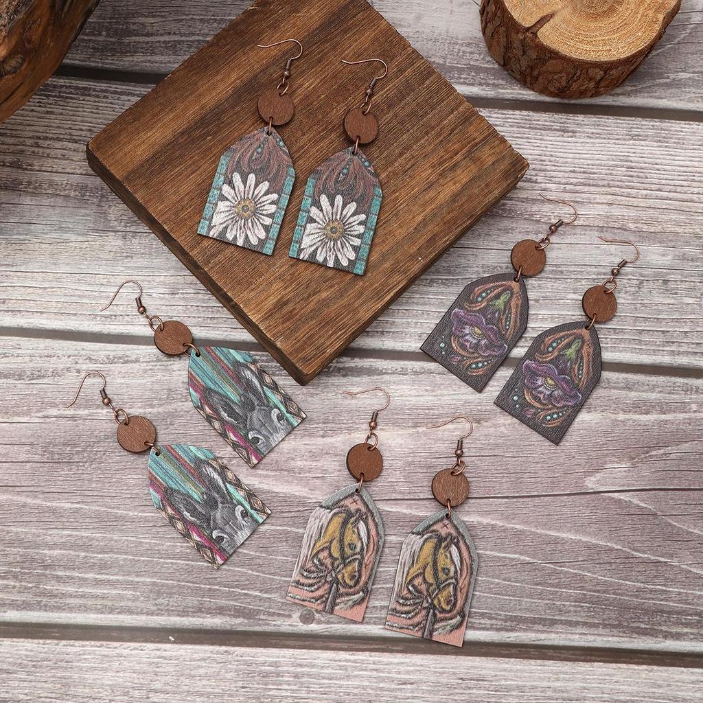 Серьги в стиле вестерн с головой быка и цветочным узором для женщин