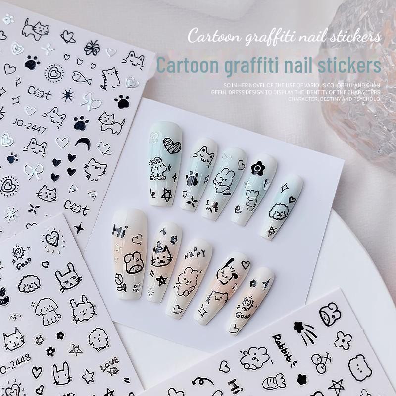 Милые наклейки для ногтей с мультяшными котами и щенками - детские граффити-наклейки для детей