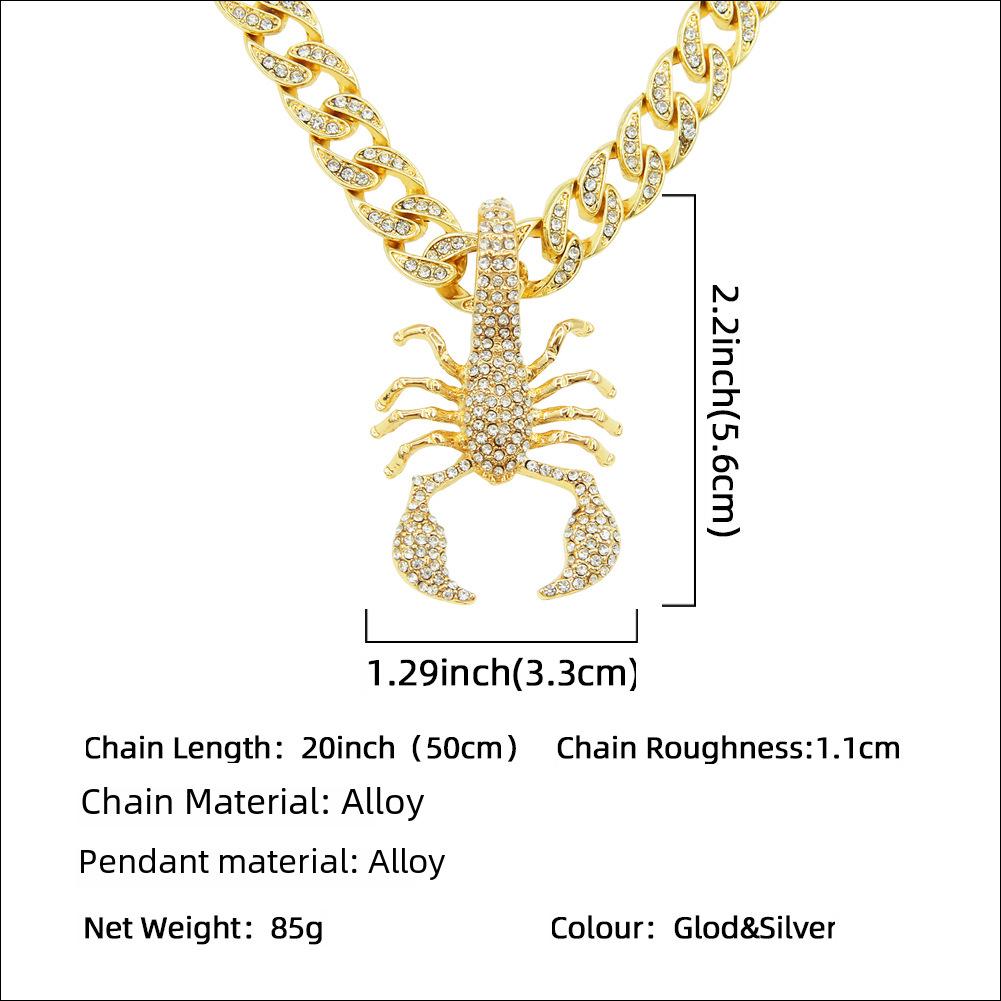 Ожерелье с подвеской в виде скорпиона с 3D бриллиантами — модный европейский и американский хип-хоп стиль с панк-кубинской цепью