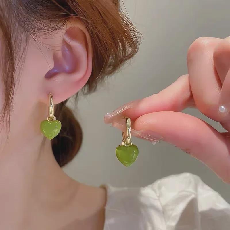 Зеленые двухсторонние серьги в форме сердца - модный квадратный дизайн с каплями масла