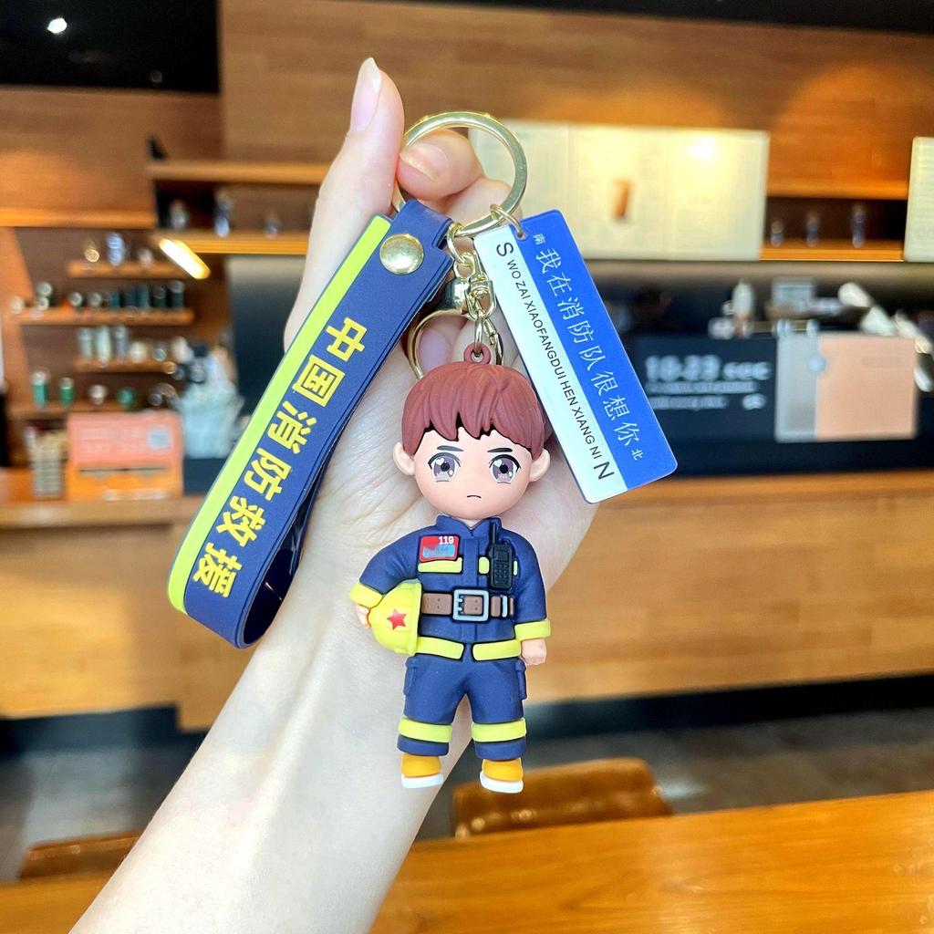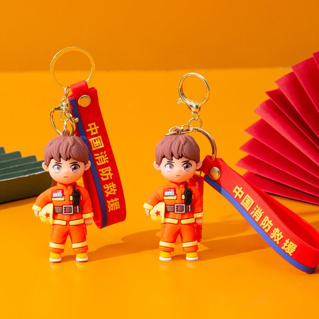Брелок-подвеска в виде мультяшного пожарного и грузовика - забавный сувенир и небольшой подарок