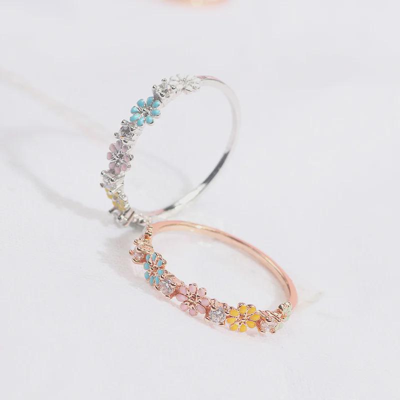 Кольцо с разноцветным цветком маргаритки и циркония для женщин - милый и милый корейский стиль