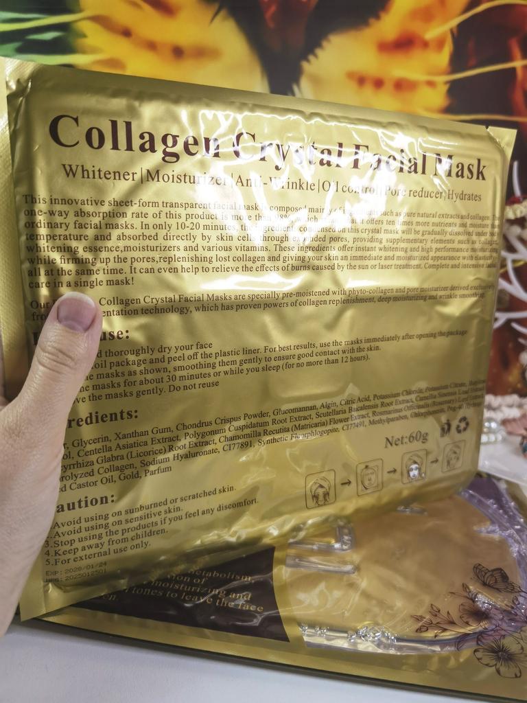 Коллагеновая кристальная маска для лица (Collagen Crystal Facial Mask). лица. 🔸Она деликатно и интенсивно питает, возвращает коже сияние, делает её белой, гладкой и упругой. 🔸Активирует метаболизм кожи, улучшает впитывание питательных веществ, обладает увлажняющим и отбеливающим действием, удаляет загрязнения, делает кожу чистой, нежной и ровной. 🔸Маска позиционируется как средство для глубокого ухода, направленное на улучшение цвета лица, увлажнение и повышение упругости кожи. 🔸Упаковка выглядит привлекательно и информативно, выделяя ключевые преимущества продукта. Рекомендую 👍 Ставлю ⭐⭐⭐⭐⭐ Спасибо продавцу ❤️ и Joom ❤️