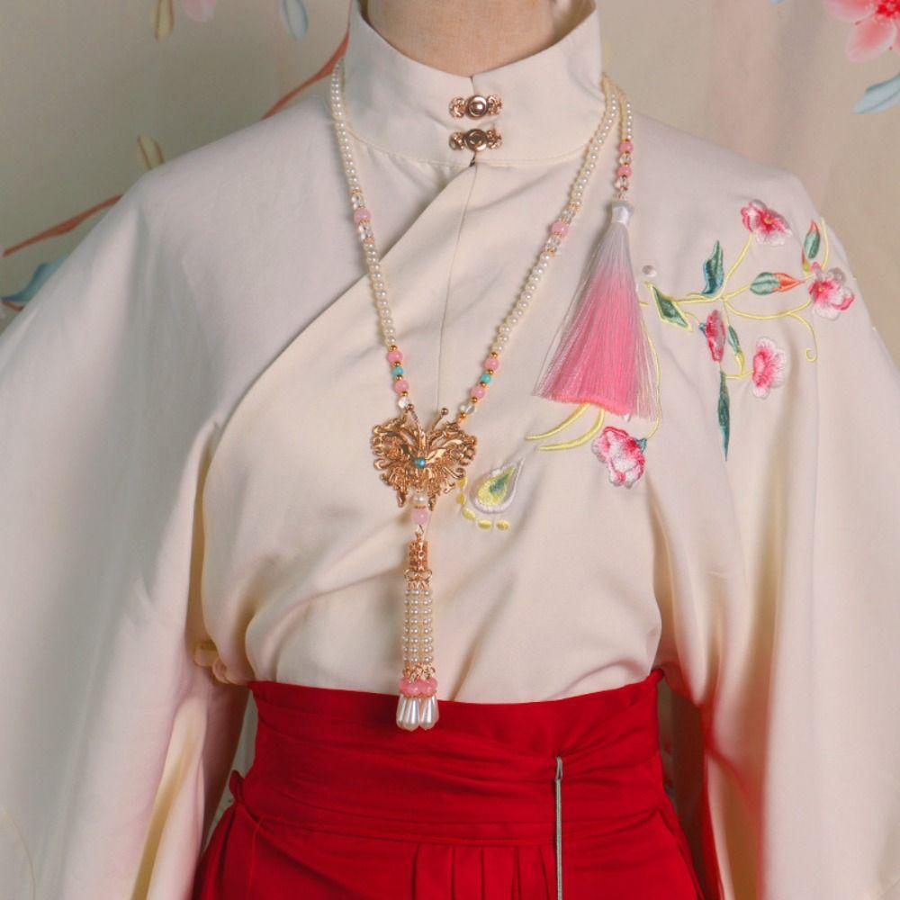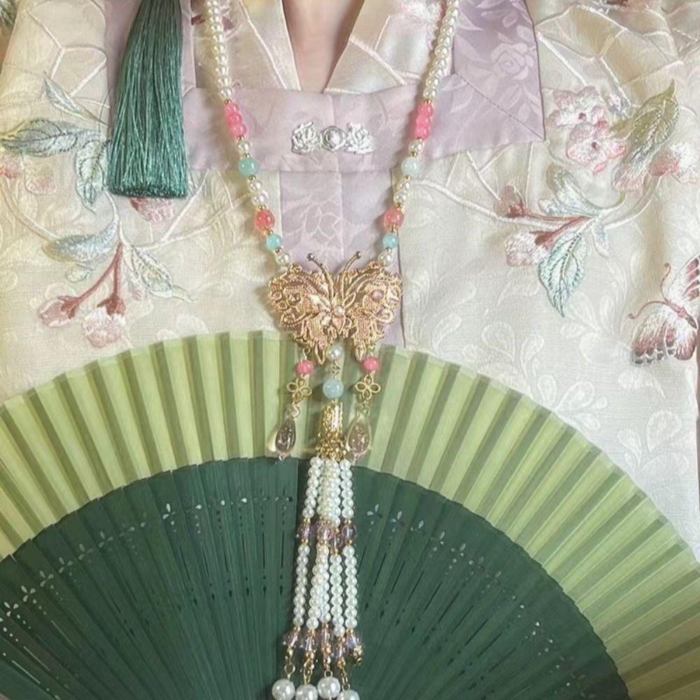 Tassel Chinese Pearl Necklace Butterfly Ethnic Style Choker Vintage Hanfu Necklace Collar