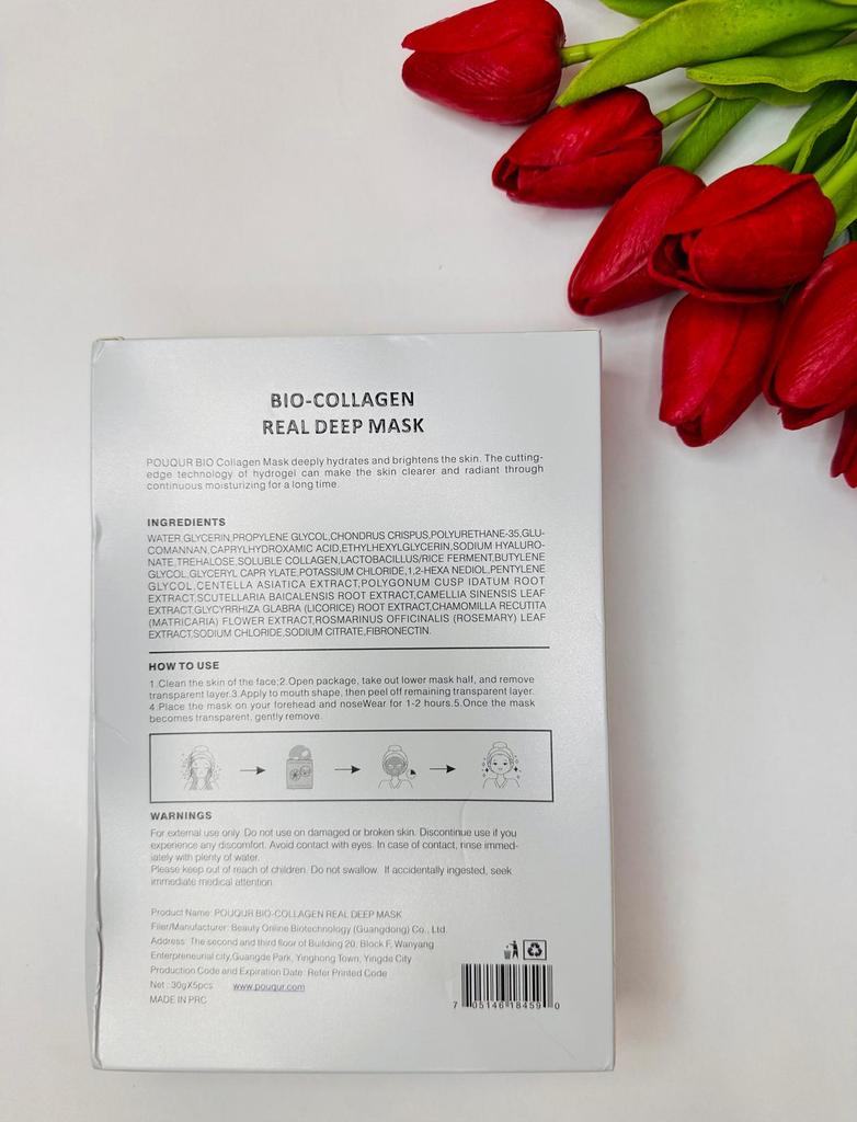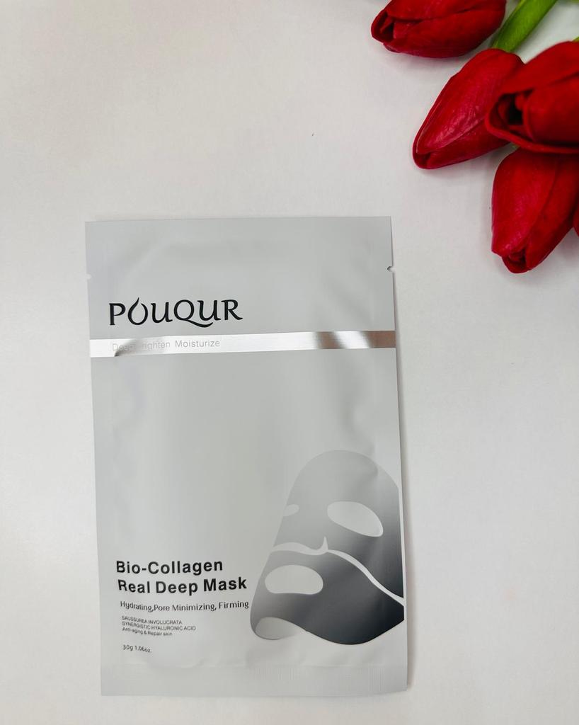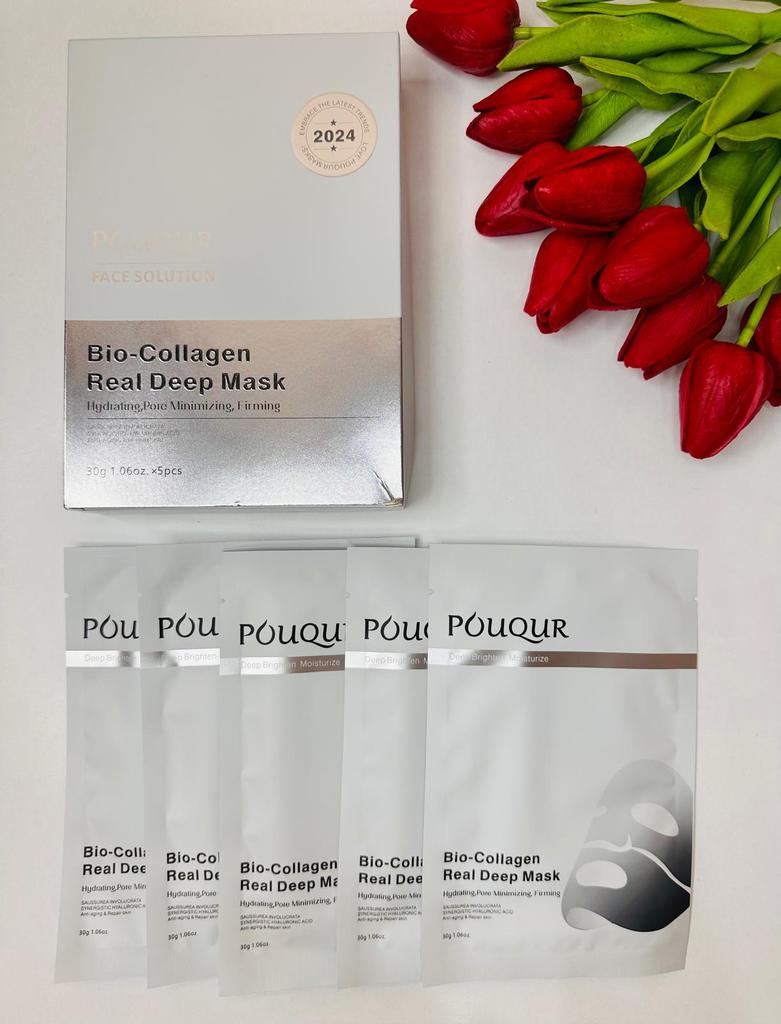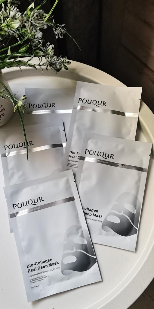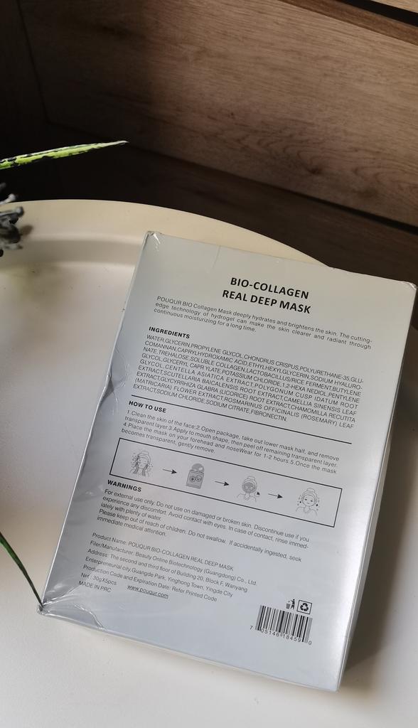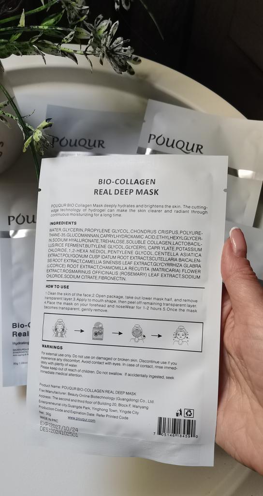 Маски Pouqur Bio-Collagen Real Deep Mask ❤️ Это набор из пяти масок для лица, каждая из которых содержит 30 г сыворотки. Маски обладают увлажняющим, поросуживающим и укрепляющим действием. Коллаген - известный ингредиент в уходе за кожей. Используется для эластичности кожи и уменьшения видимости мелких морщин. Маски разработана для эффективного проникновения в кожу и доставки значительной дозы активных ингредиентов. Содержит увлажняющие компоненты, которые помогают бороться с сухостью и делают кожу мягкой и увлажненной, помогает сузить поры и уменьшить их видимость, что потенциально приводит к более гладкому цвету лица. Наносим на чистую кожу. Расправляем маску на коже, чтобы она плотно прилегала по всему лицу, избегая образования складок и пузырьков воздуха. Плотное прилегание обеспечивает лучший контакт сыворотки с кожей. Оставить маску на лице на 1-2 часа. Снять, когда маска станет прозрачной. Оставайтесь красивыми и удачных покупок ❤️ Ваша Вика 🙂