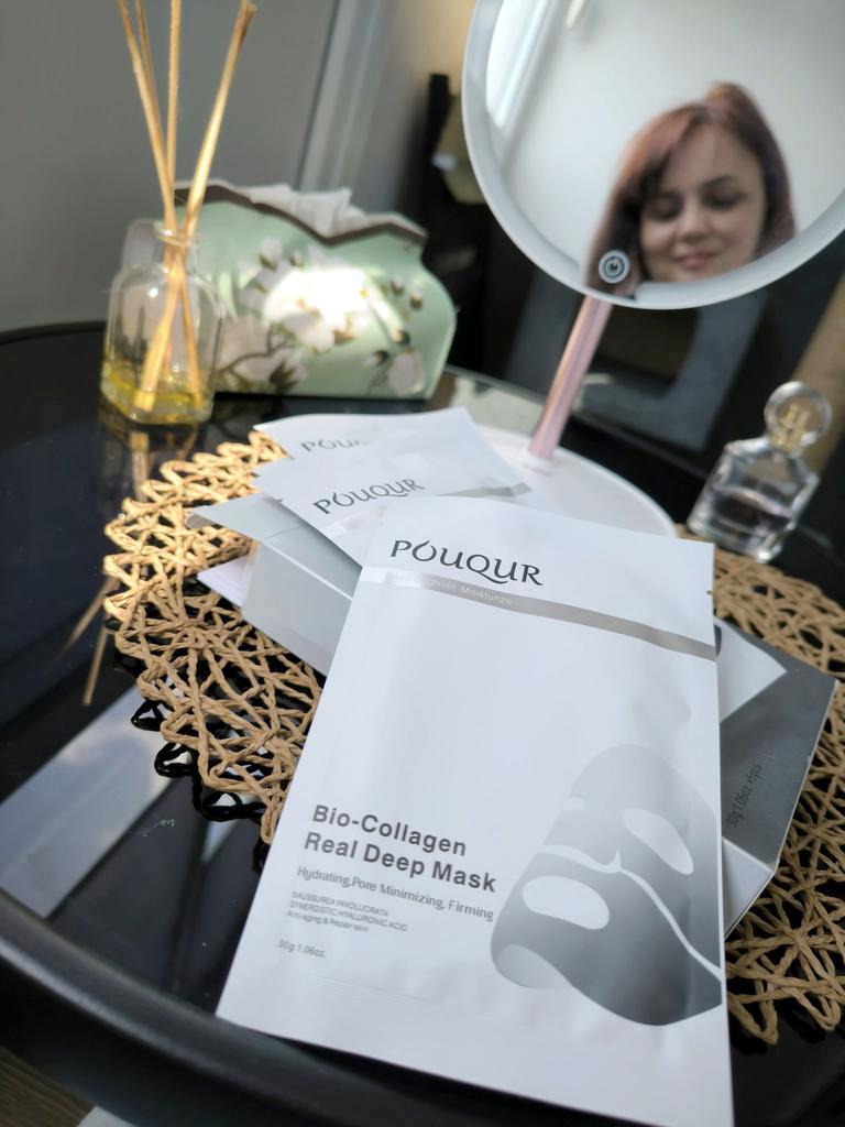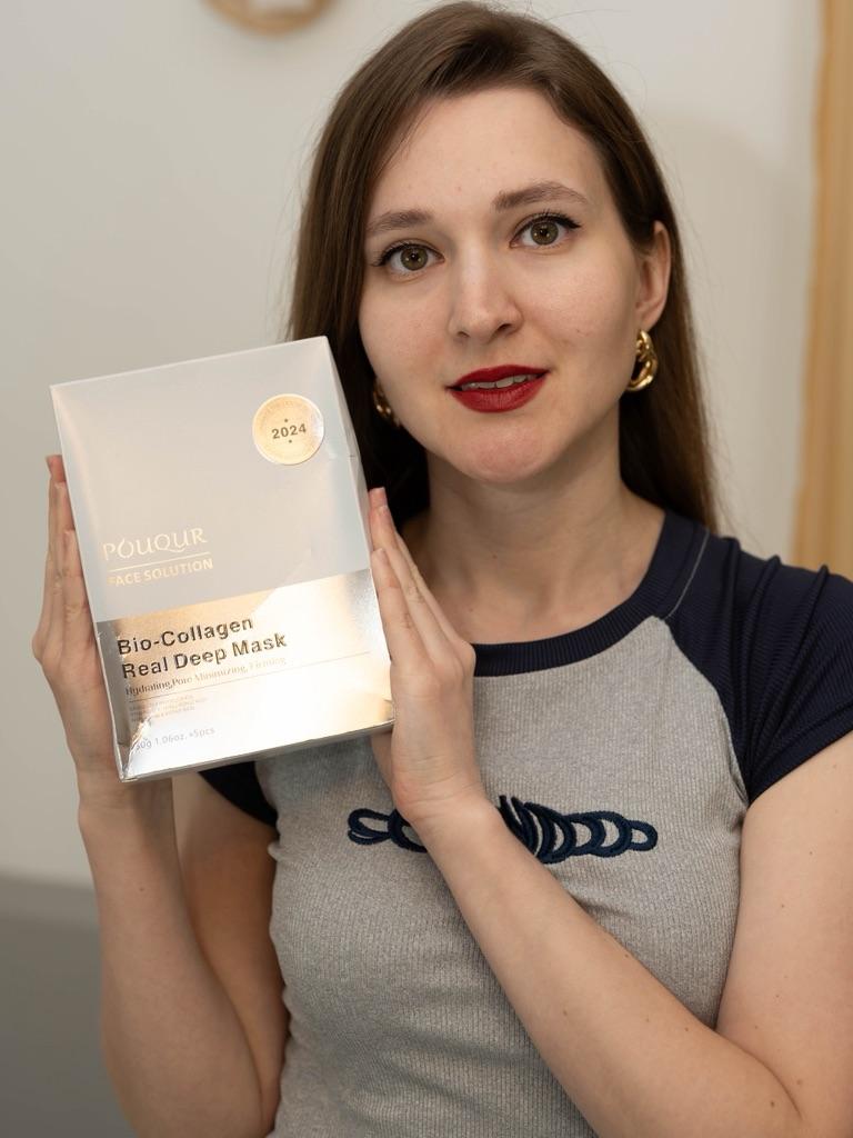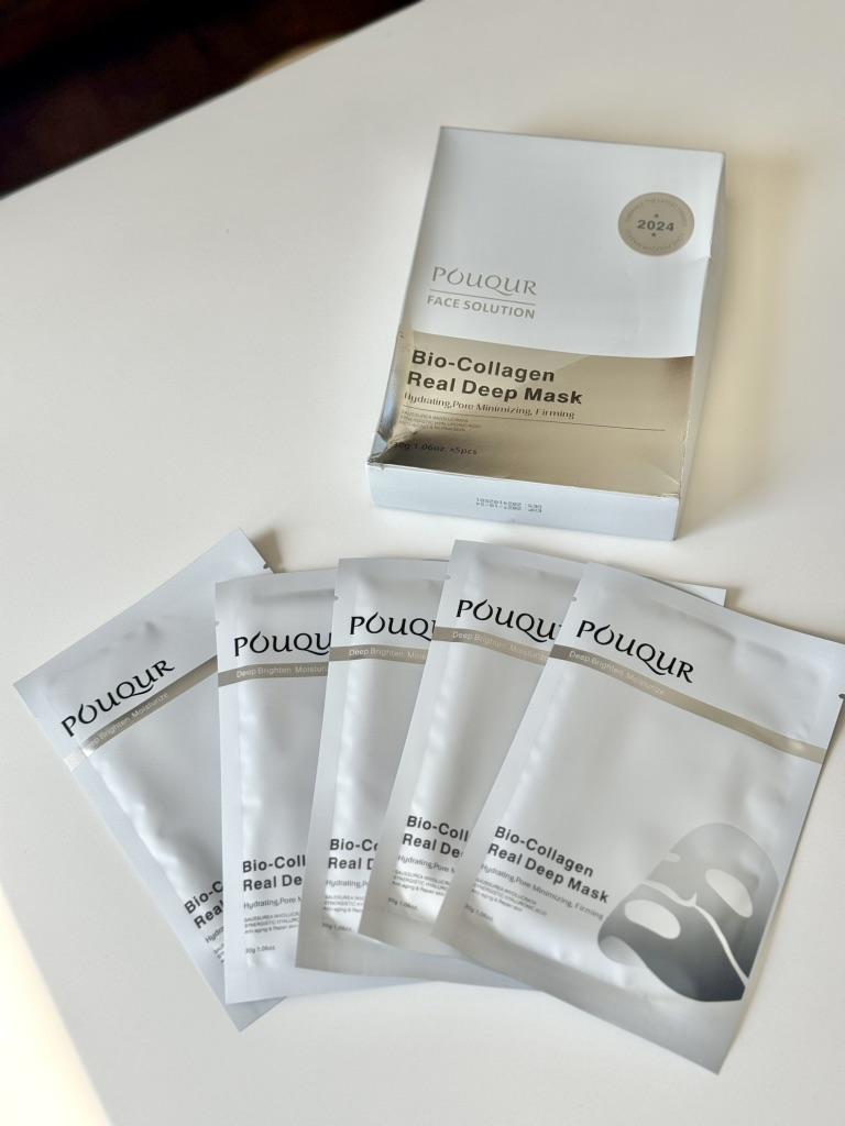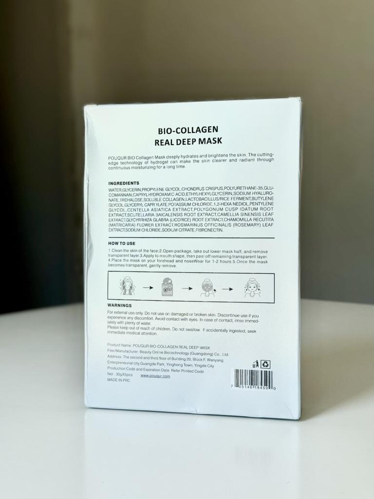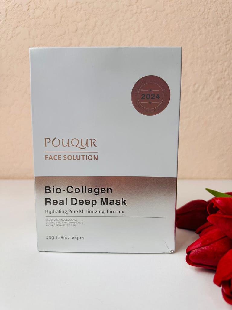 Маски Pouqur Bio-Collagen Real Deep Mask ❤️ Это набор из пяти масок для лица, каждая из которых содержит 30 г сыворотки. Маски обладают увлажняющим, поросуживающим и укрепляющим действием. Коллаген - известный ингредиент в уходе за кожей. Используется для эластичности кожи и уменьшения видимости мелких морщин. Маски разработана для эффективного проникновения в кожу и доставки значительной дозы активных ингредиентов. Содержит увлажняющие компоненты, которые помогают бороться с сухостью и делают кожу мягкой и увлажненной, помогает сузить поры и уменьшить их видимость, что потенциально приводит к более гладкому цвету лица. Наносим на чистую кожу. Расправляем маску на коже, чтобы она плотно прилегала по всему лицу, избегая образования складок и пузырьков воздуха. Плотное прилегание обеспечивает лучший контакт сыворотки с кожей. Оставить маску на лице на 1-2 часа. Снять, когда маска станет прозрачной. Оставайтесь красивыми и удачных покупок ❤️ Ваша Вика 🙂