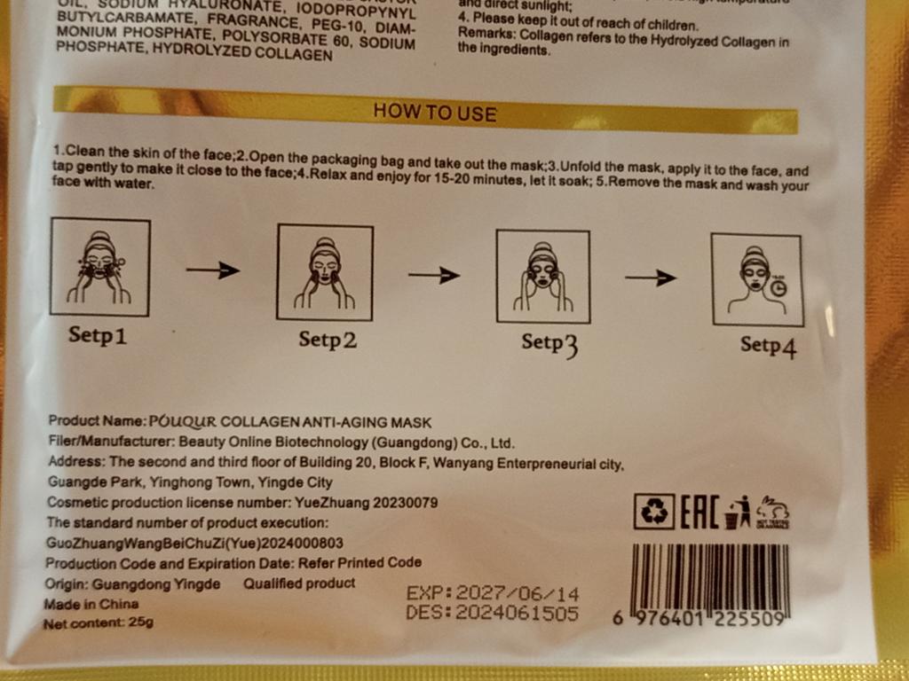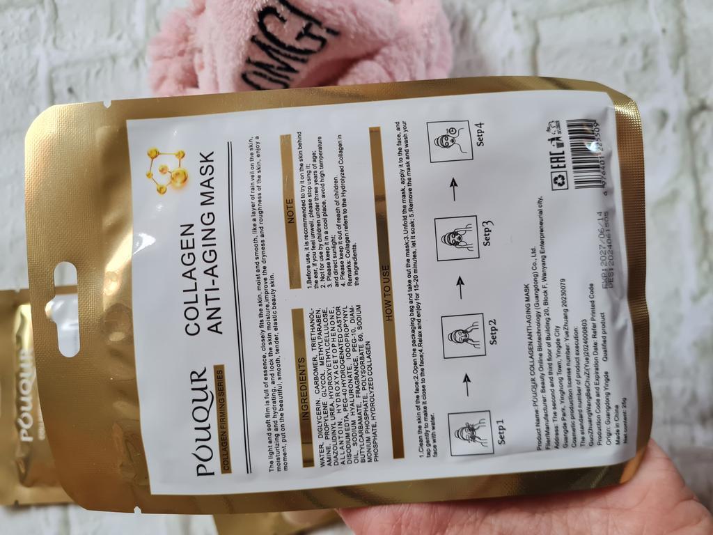 Коллагеновые маски для лица! ✈️Посылка шла около двух недель до Молдовы, Кишинёв. 📌Посылка была упаковано хорошо. 📌Товар без брака. 📌Дизайн красивый. 📌Качество хорошее. 📌5 штук. 😍Рекомендую и ещё раз рекомендую к покупке!!!