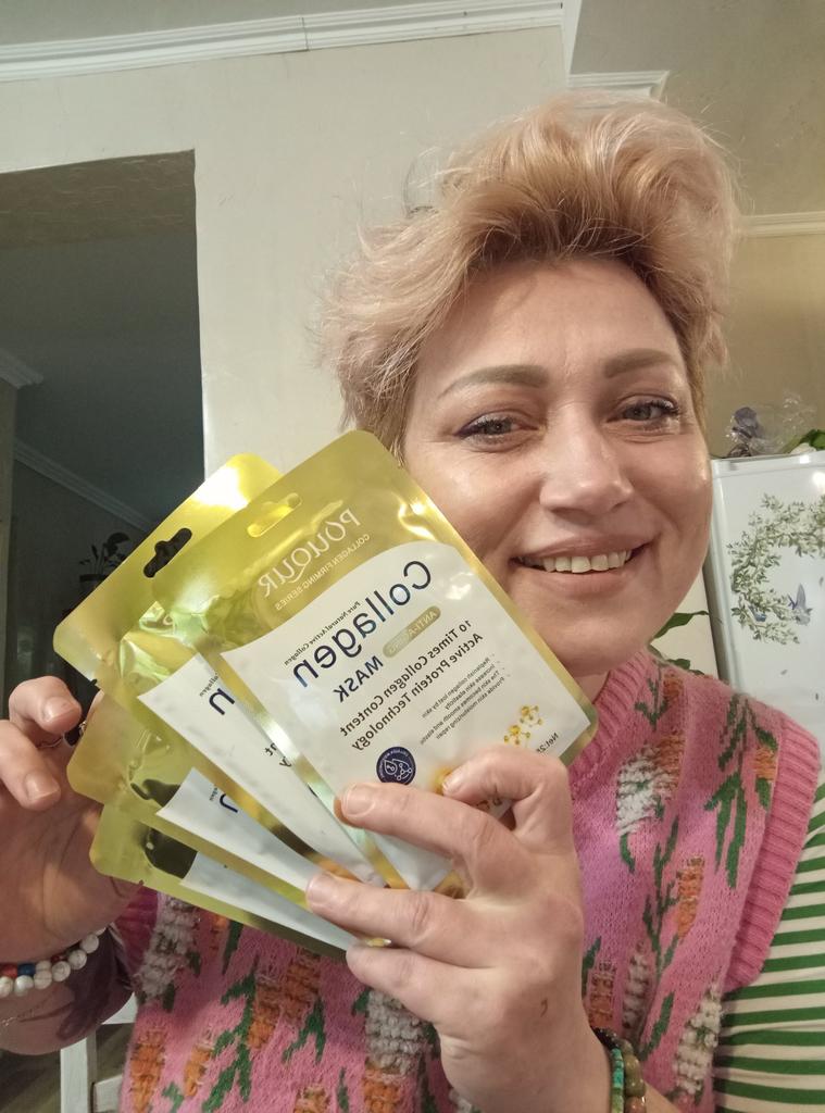 Коллагеновая увлажняющая маска.. Маски последнее время использую часто. От жары кожа сухая. В комплексе с другими увлажняющими средствами даёт отличный результат. Полностью соответствует описанию продавца. Заходите в магазин там вы найдёте большой выбор уходовых средств для кожи лица и шеи. Покупкой довольна, заказала пять штук. Рекомендую вам данные товары магазин. А с вами Ксю и до следующего обзора.